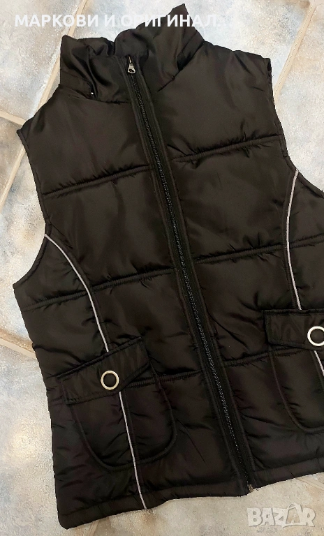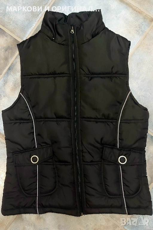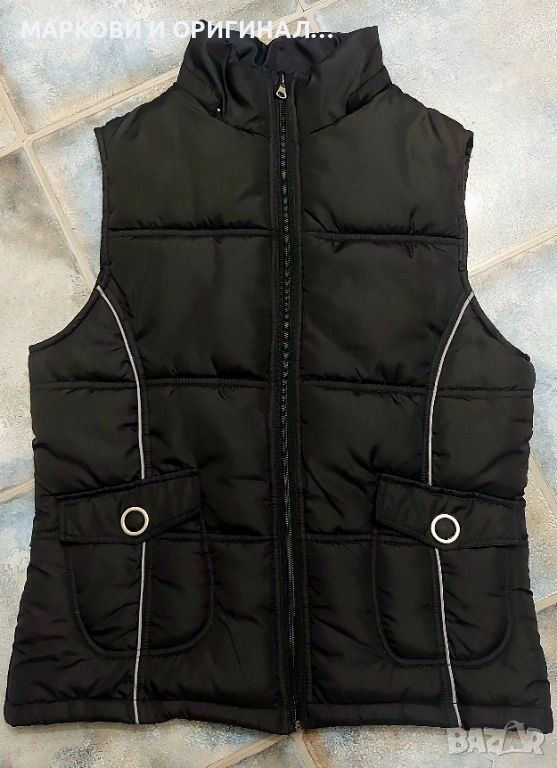 Дамски зимен и много топъл елек, размер Л , става и за М рр. Черен на цвят, с външни и вътрешни джобчета. Като нов, без забележки!