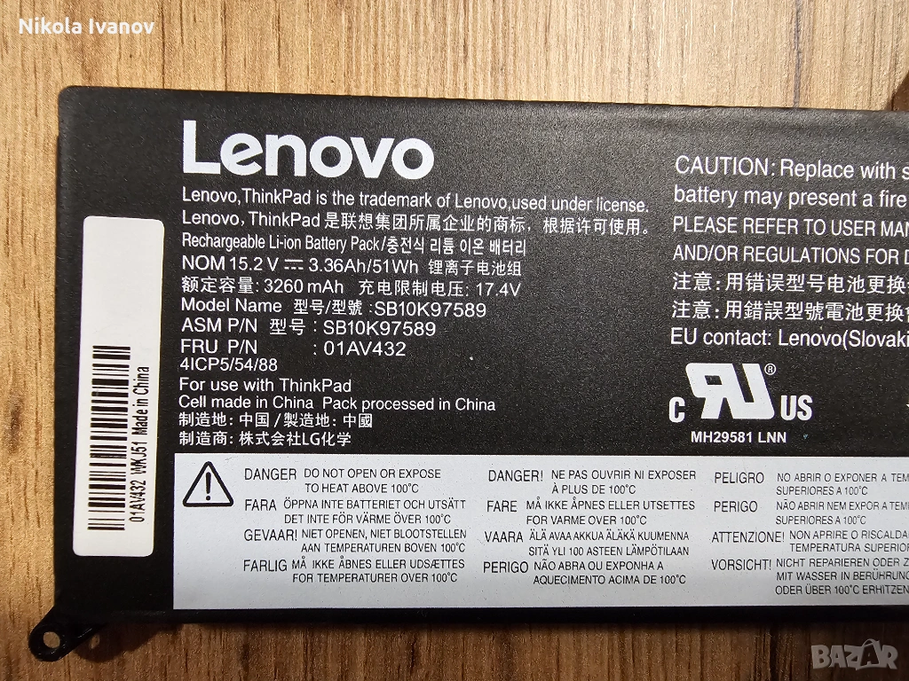 Здравейте, продавам следната батерия от лаптоп Lenovo Thinkpad X380 Yoga.