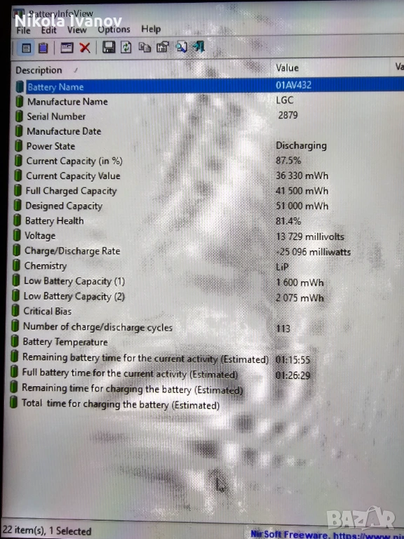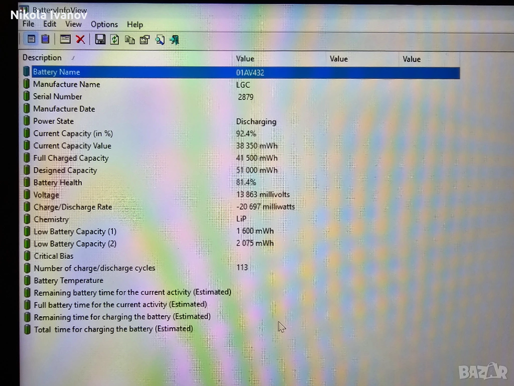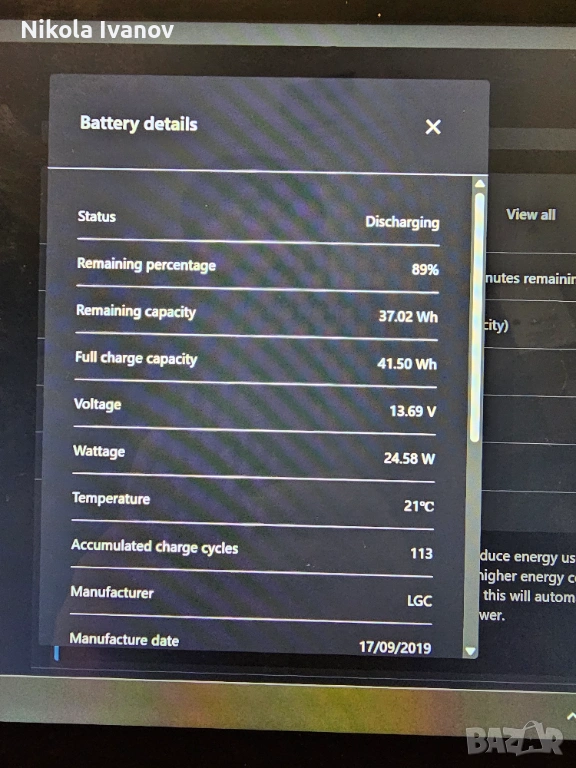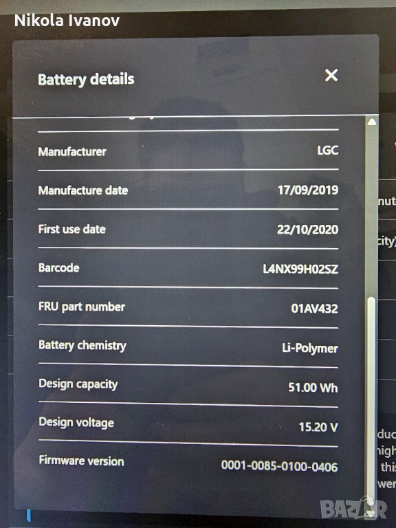 Оригинална батерия за Lenovo Thinkpad X380 Yoga | SB10K97589 | 41.5 Wh от 51 Wh | 81.4% Живот |15.2V → Обява 53574606