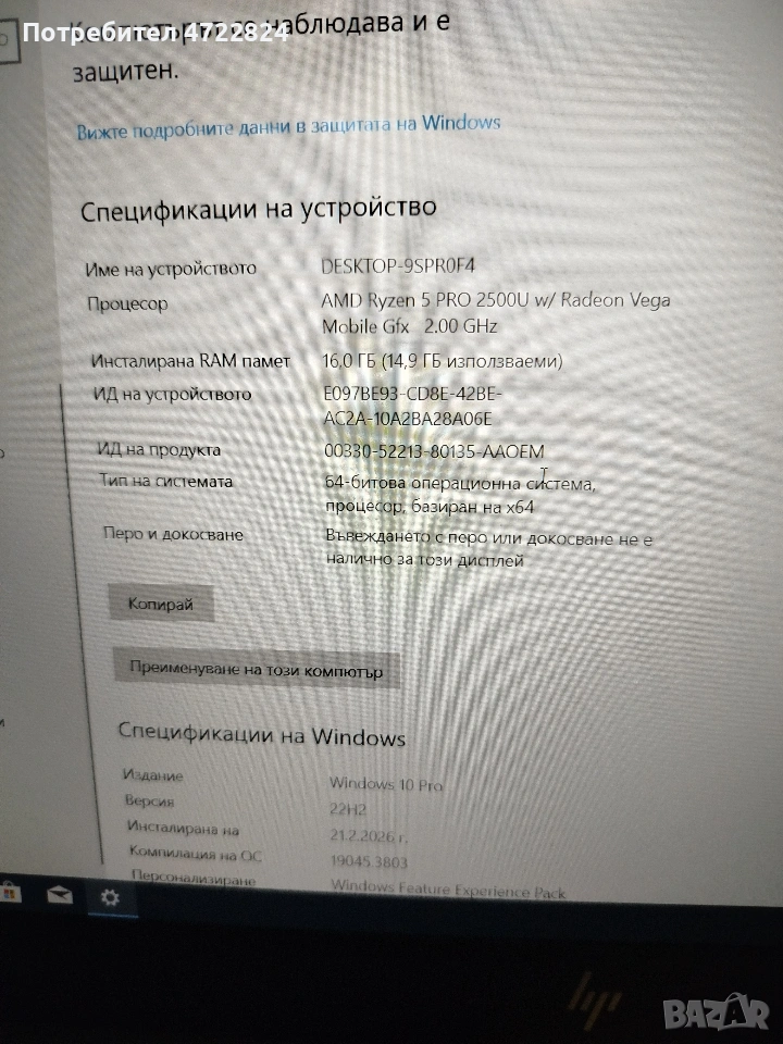 Windows 10 Pro активиран с дигитален лиценз