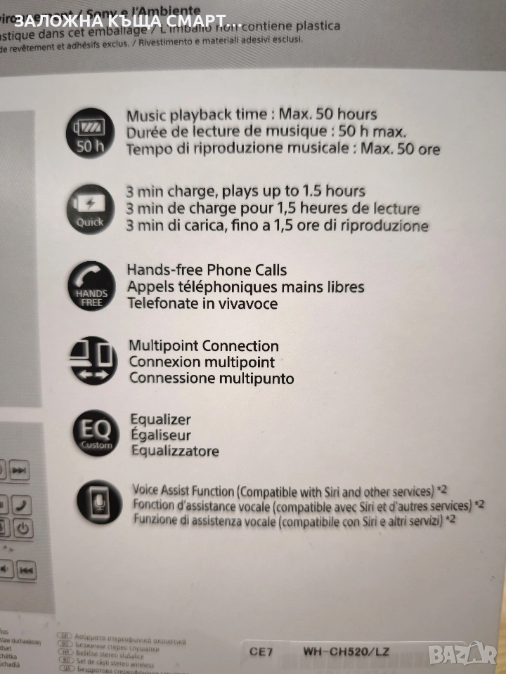 Bluetooth слушалки Sony wh-ch520 → Обява 53574710