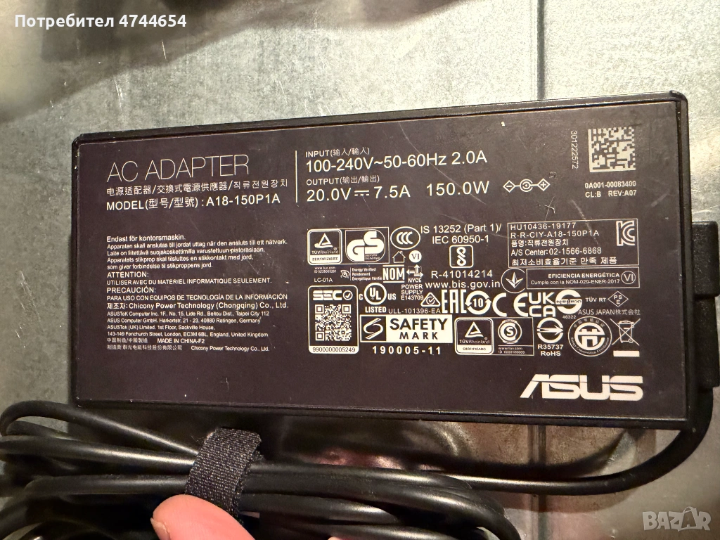 Продавам работещ адаптер за ASUS → Обява 53574716