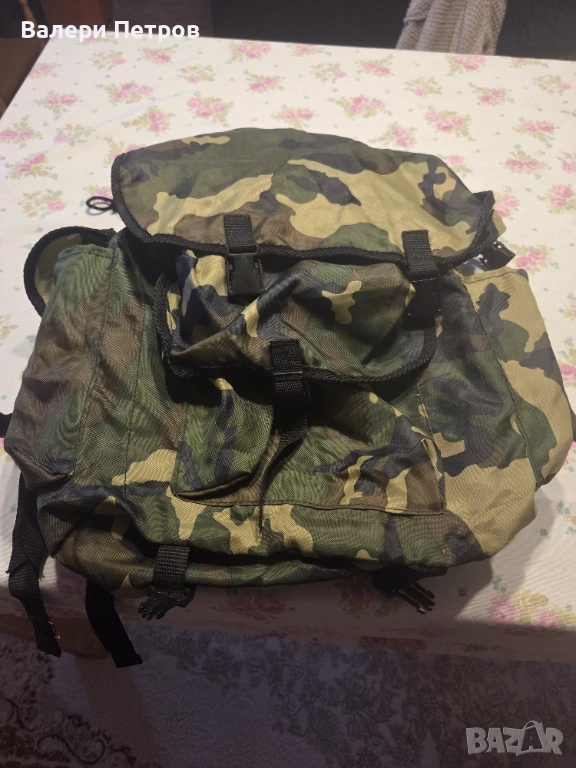 Лека туристическа раница в камуфлажен цвят, без самар