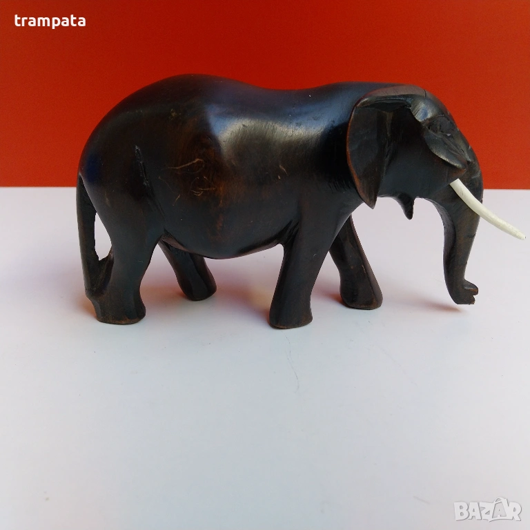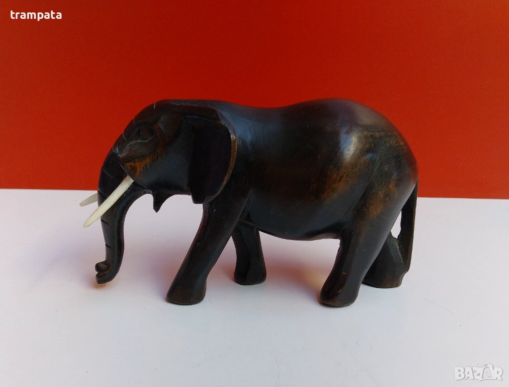 Ръчно резбована дървена фигурка на слон, често използвана като декоративен предмет или колекционерска стойност.