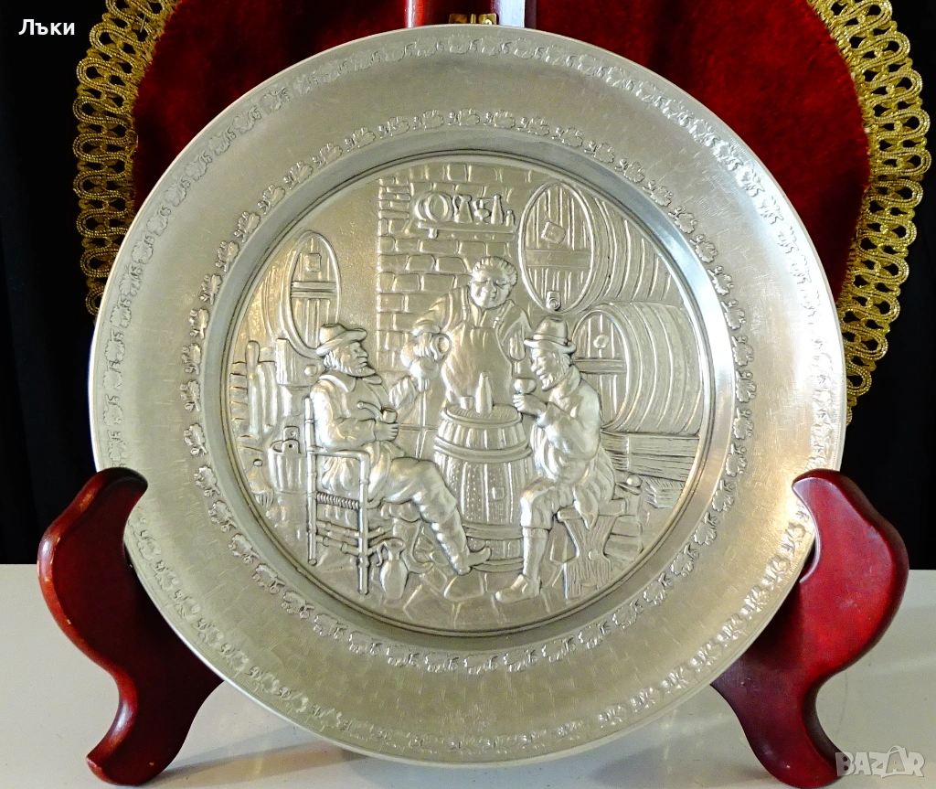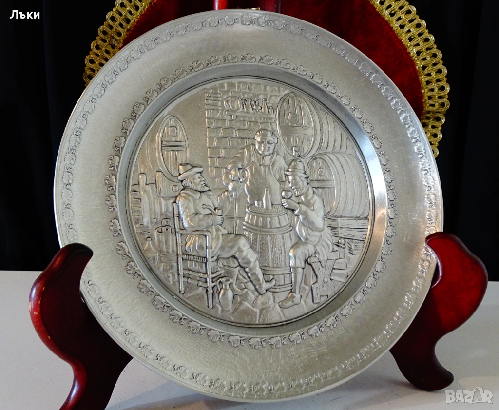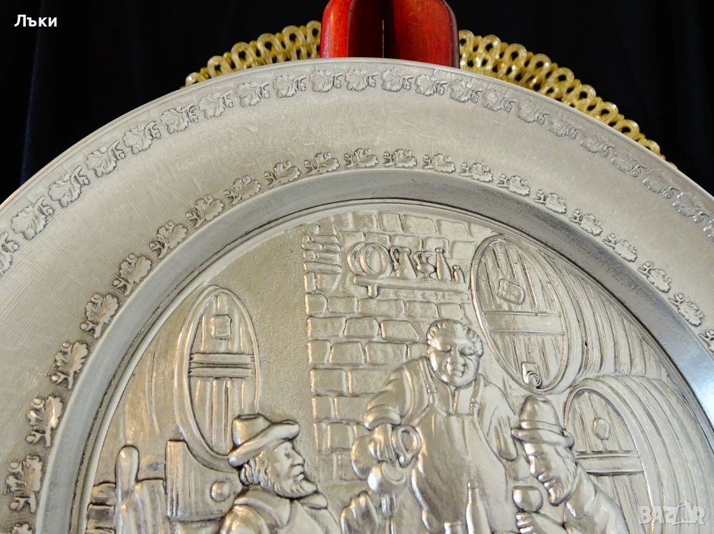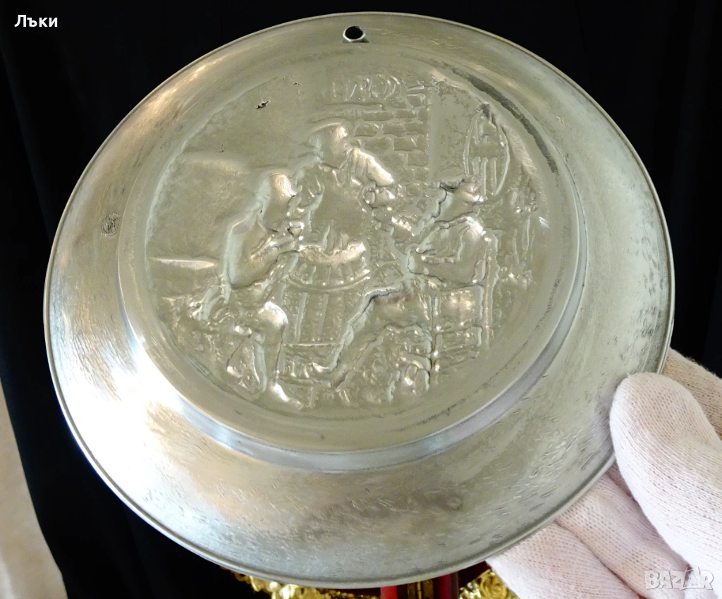 Стара немска калаена чиния за стена,пано,майсторска ръчна