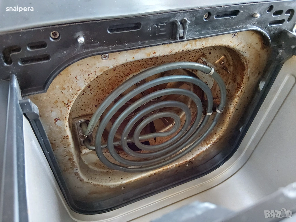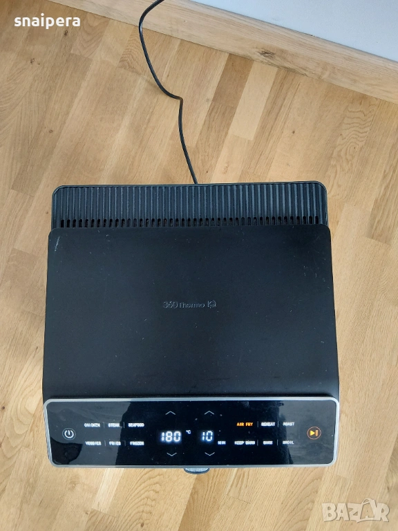 Еърфраера си работи без никакви проблеми. Взех друг с две кошници и този не ми трябва повече :) Изчистих долния реотан, но не ми се занимава за горния. има книжки и скара към него + кутията.
