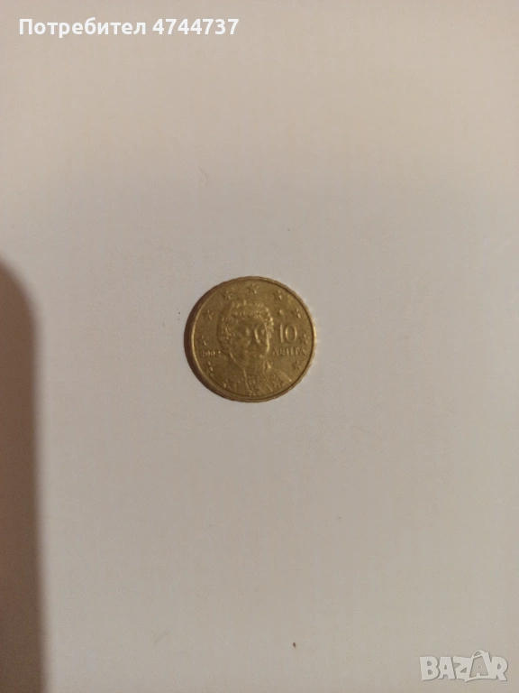 Колекционерска монета 10 евроцента от 2002 година; буква F