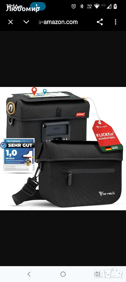 MIVELO Чанта за кормило за велосипед за Klickfix - 100% водоустойчива - Чанта за кормило