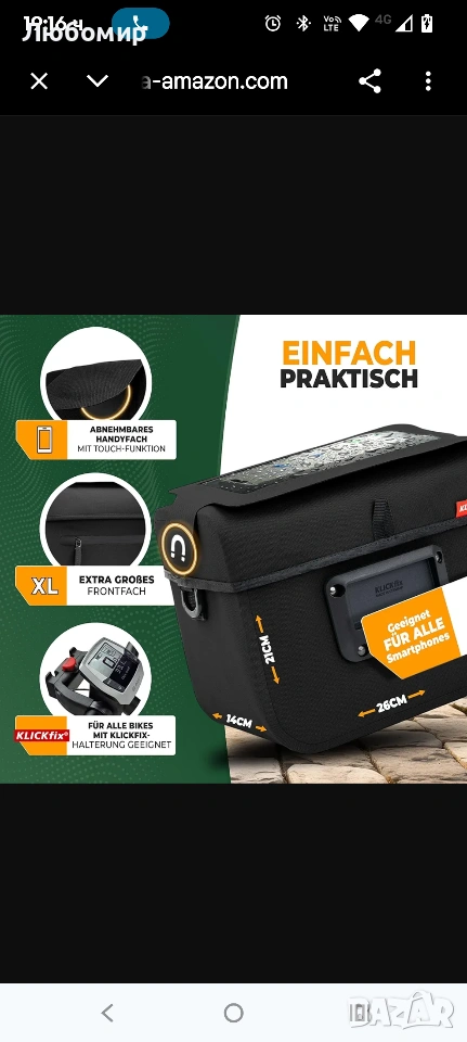 Липсва стоиката MIVELO Чанта за кормило за велосипед за Klickfix - 100% водоустойчива - Чанта за кормило за велосипед - Свалящо се отделение за мобилен телефон - Чанта за кормило - Чанта за кормило - Съвместима с електрически велосипед (черна).Просторна и компактна - С обем от 7 литра, голямо предно отделение и много място за съхранение + други отделения във вътрешността, чантата за кормило има достатъчно място за всичко важно. Здравият TPU материал на чантата е рециклируем, изключително издръжлив и устойчив на замърсявания.