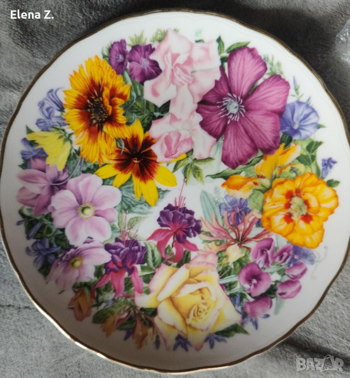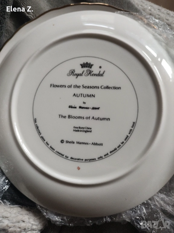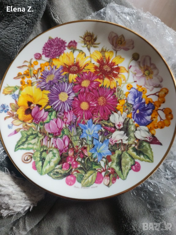 Другата е с име "Есен - цветовете на есента" по картина на Sheila Mannes Abbot. Изработена от фин костен порцелан, с диаметър 20см. В много добро състояние.