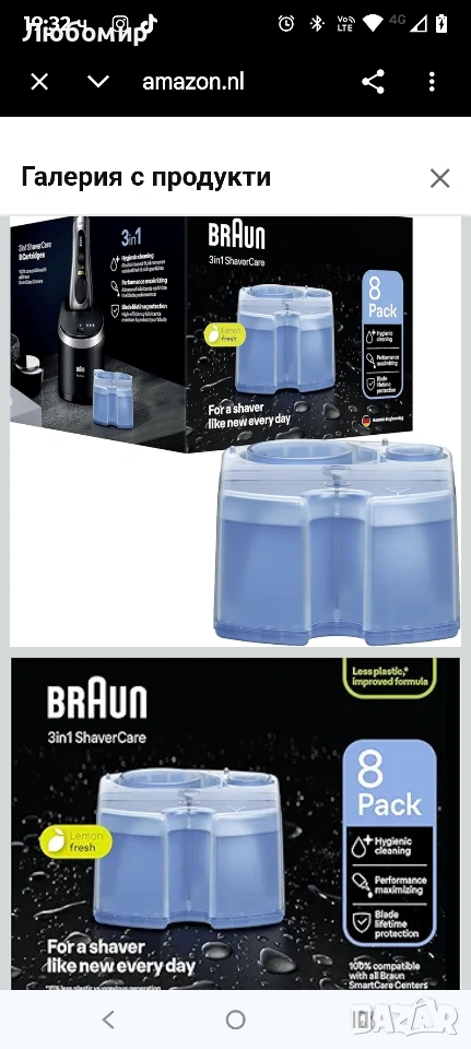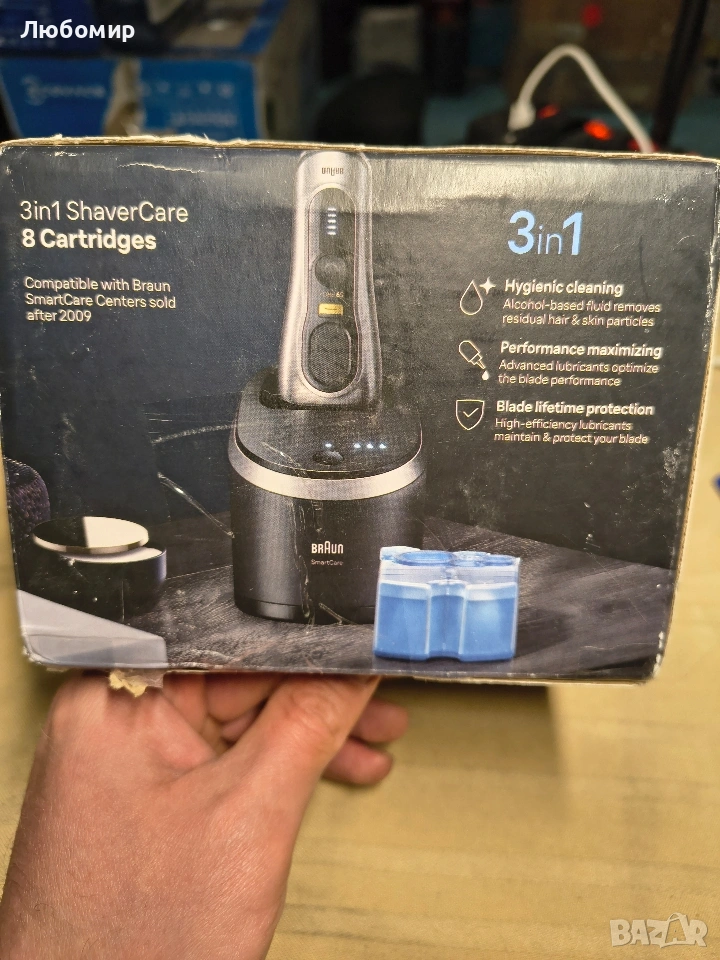 Braun 3in1 Shaver Care почиства хигиенично самобръсначката ви, като премахва остатъци от косми и кожни частици