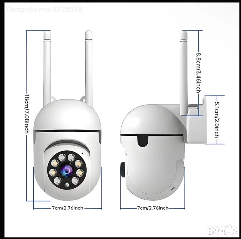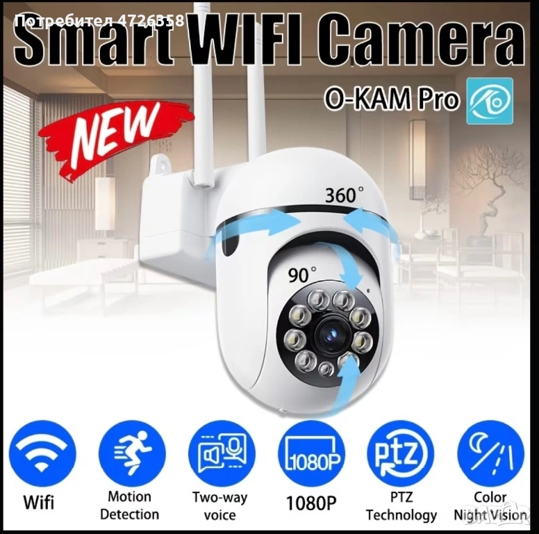 Продавам нова безжична Wi-Fi камера за наблюдение с въртене и отлично качество на картината. Подходяща за дом, офис, двор, склад или гараж.