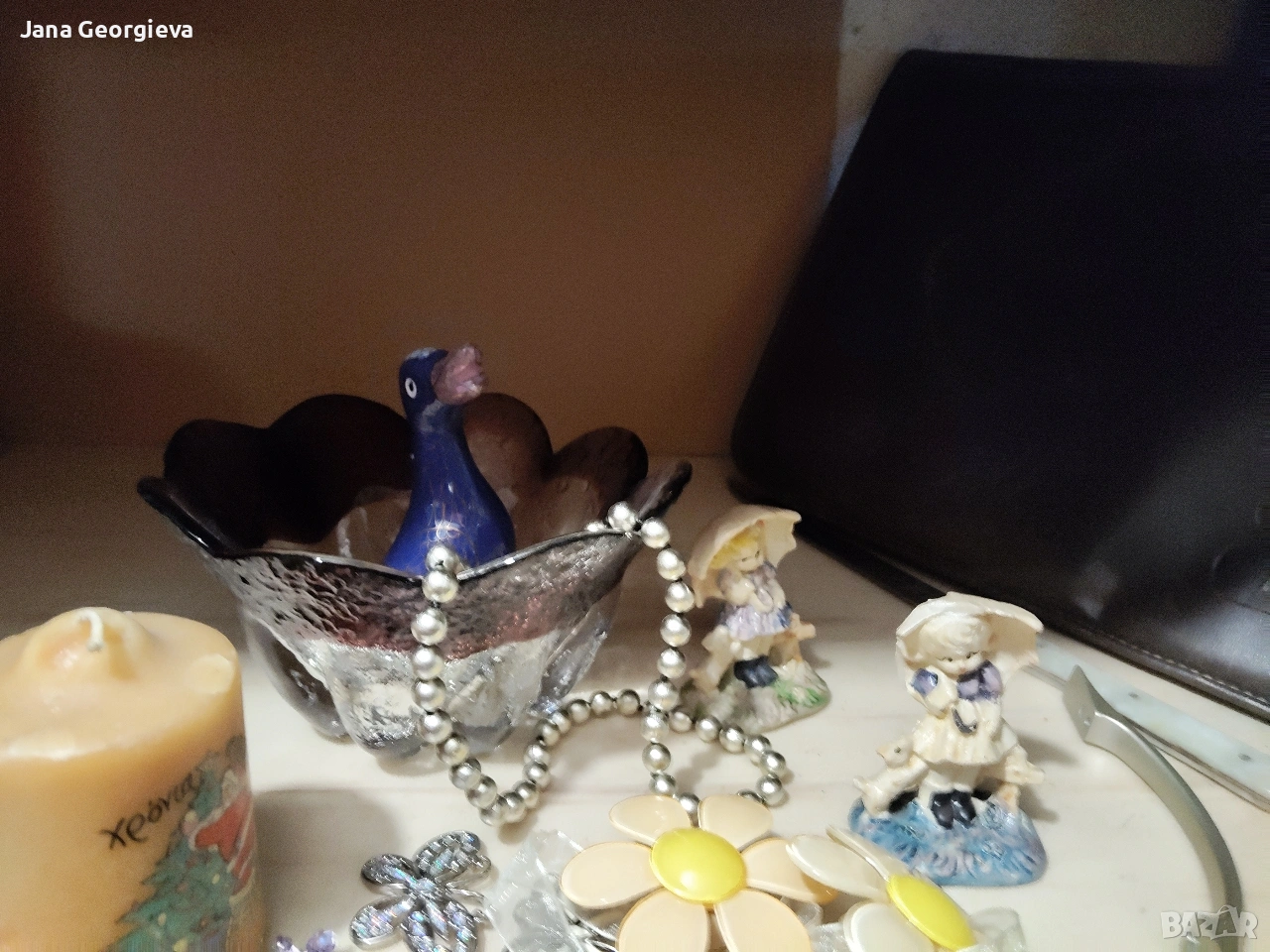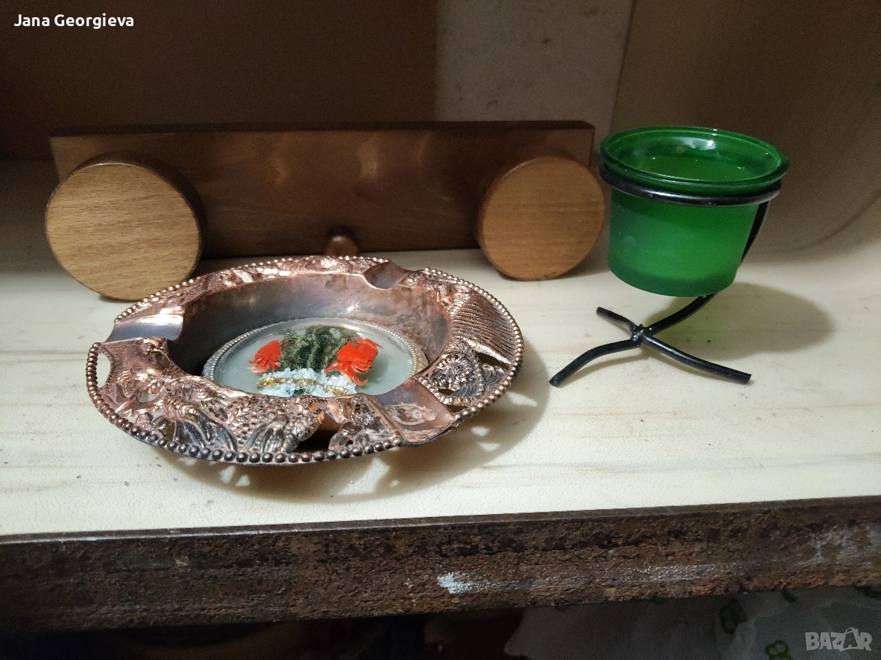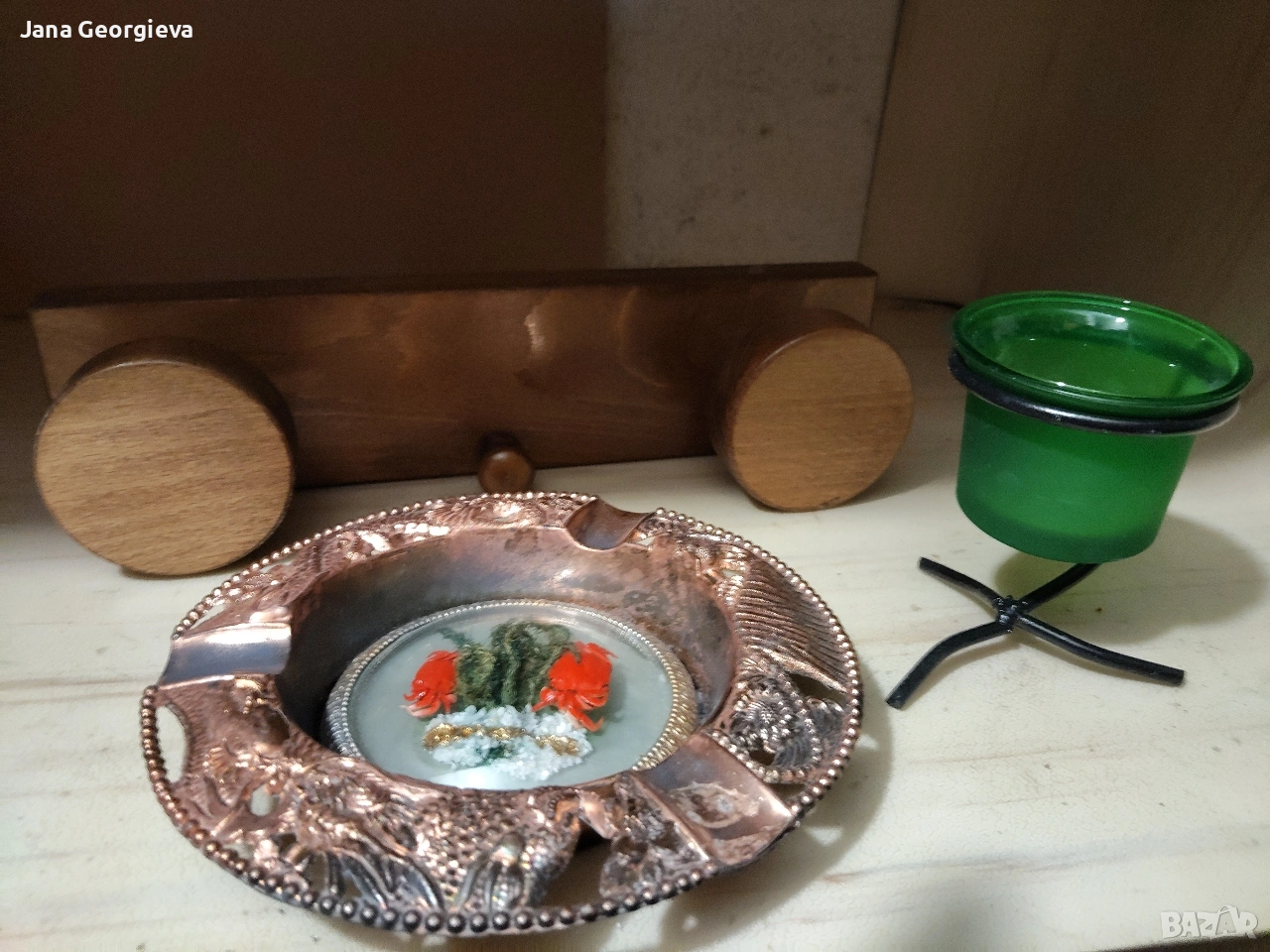 Всяка снимка е по 10евро. Пепелник, закачалка и свещник. Фотоапарат. Стъклена купа украшения и гердан.