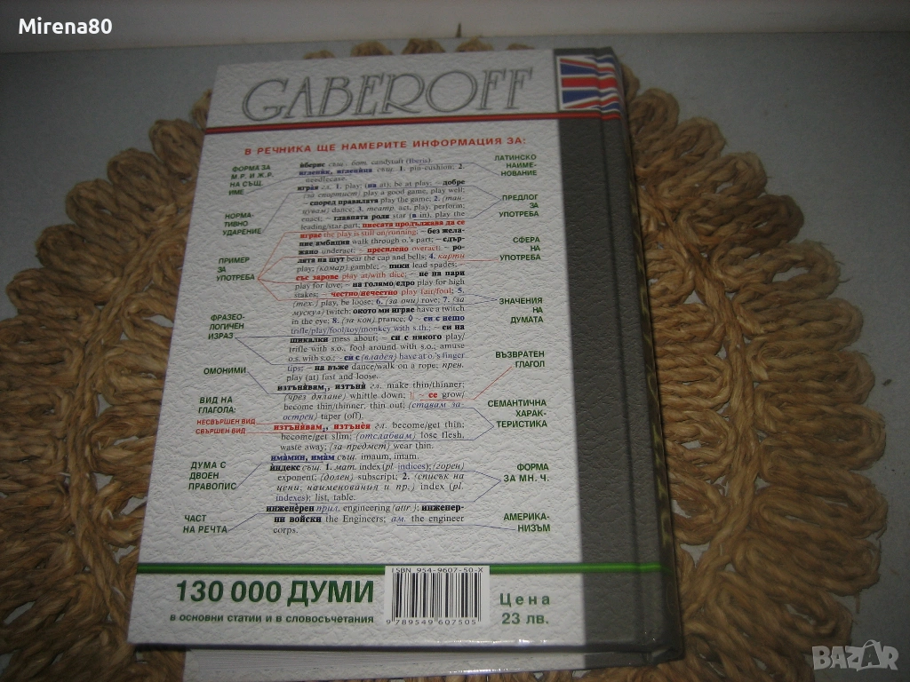 корици, 1184 стр.,голям формат. Автори: Снежана Боянова, Лена Илиева, Вакрилен Кильовски. Съдържа 120 000 думи, както и английска граматика с таблици и обяснения. Незаменим за всички, изучаващи или занимаващи се професионално с английски език !