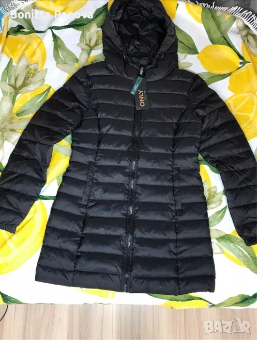 Дълго яке по тялото в черен цвят от марката Only. Ново с етикета. Размер S.