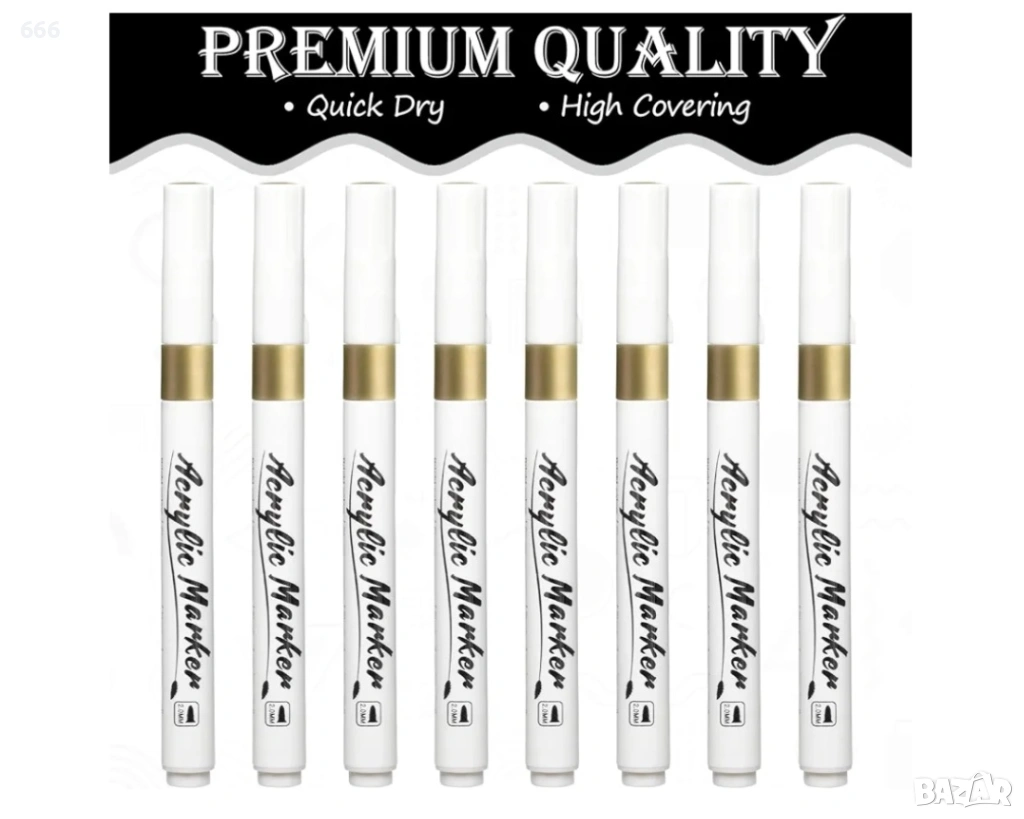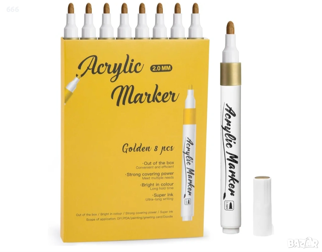 Акрилни златни маркери, пакет от 8 златни маркера за рисуване