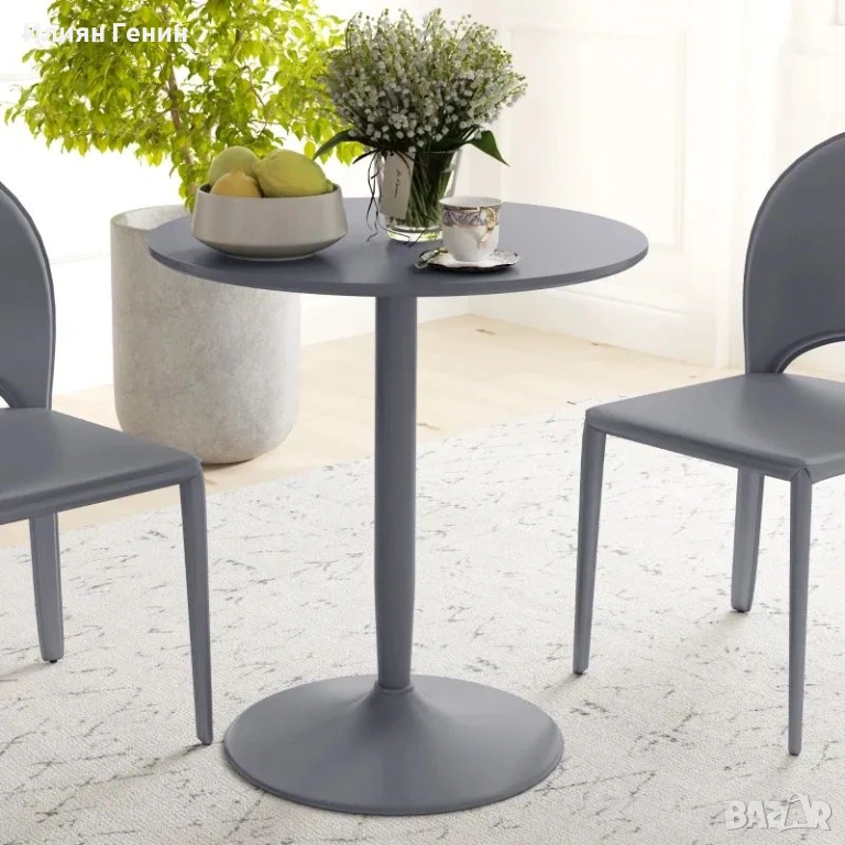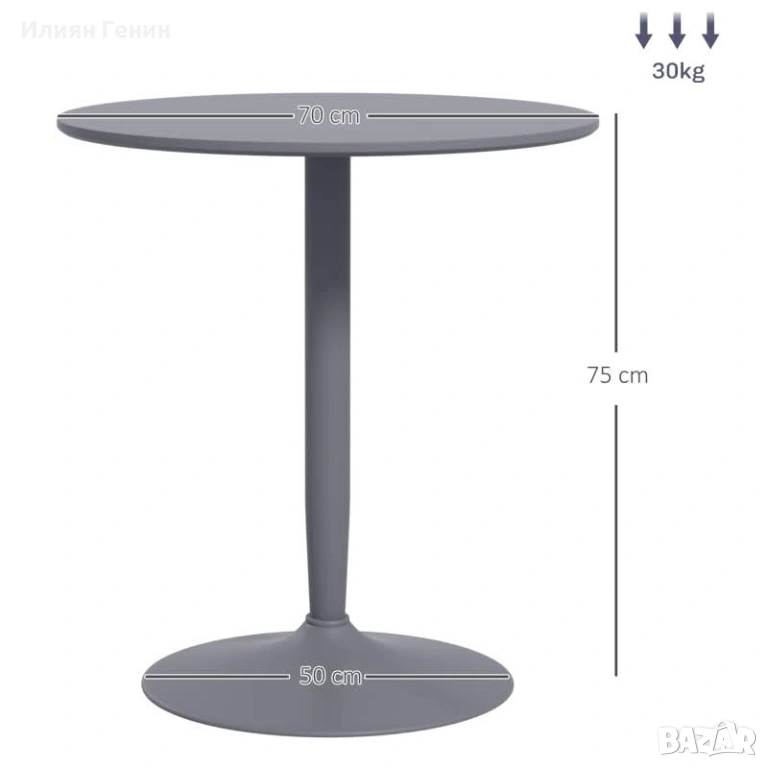 Трапезна маса HOMCOM за 2 души, кръгъл плот, стоманена основа, сива, 70 x 70 x 75 см - 80.00 €.