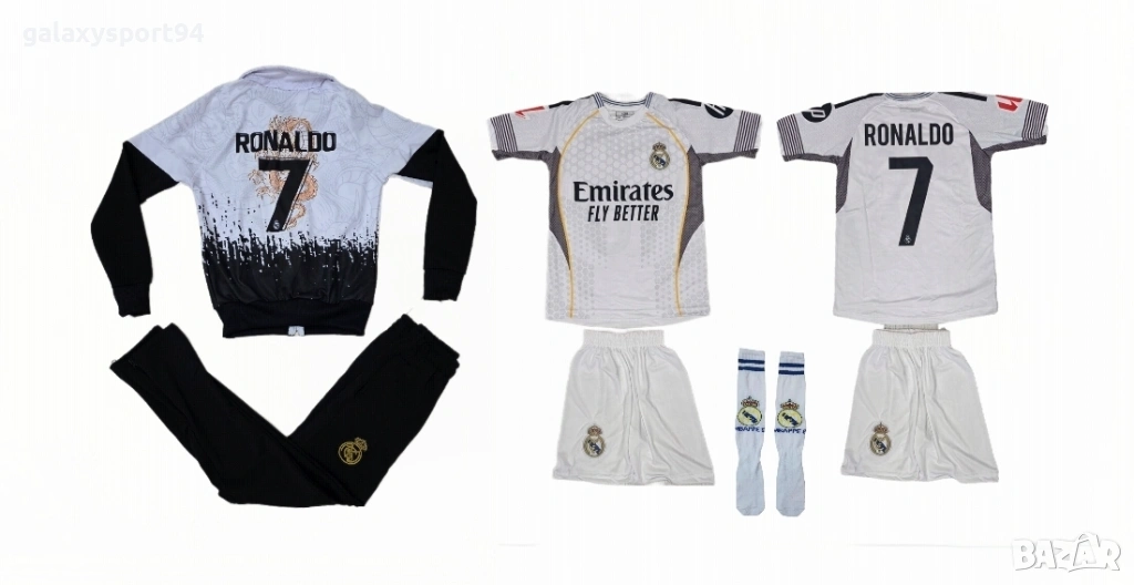 Бял Дракон Ronaldo 7 2026 Мадрид Детски комплект с екип + чорапи CR7