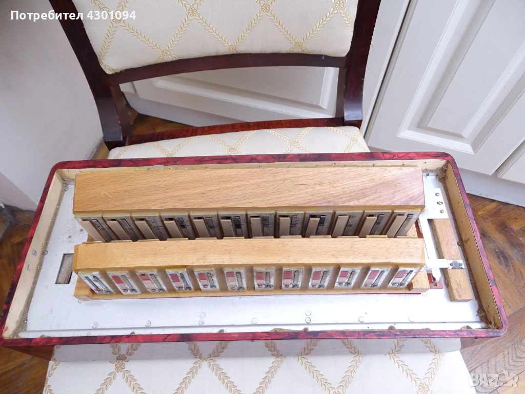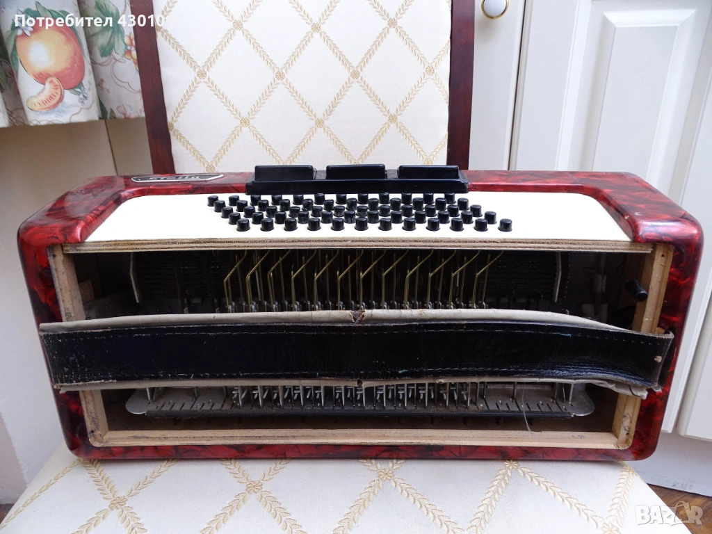 Механика: Цялата механика (лостове, клапи и държачи), която свързва басите с вътрешността на акордеона, е налична и монтирана.