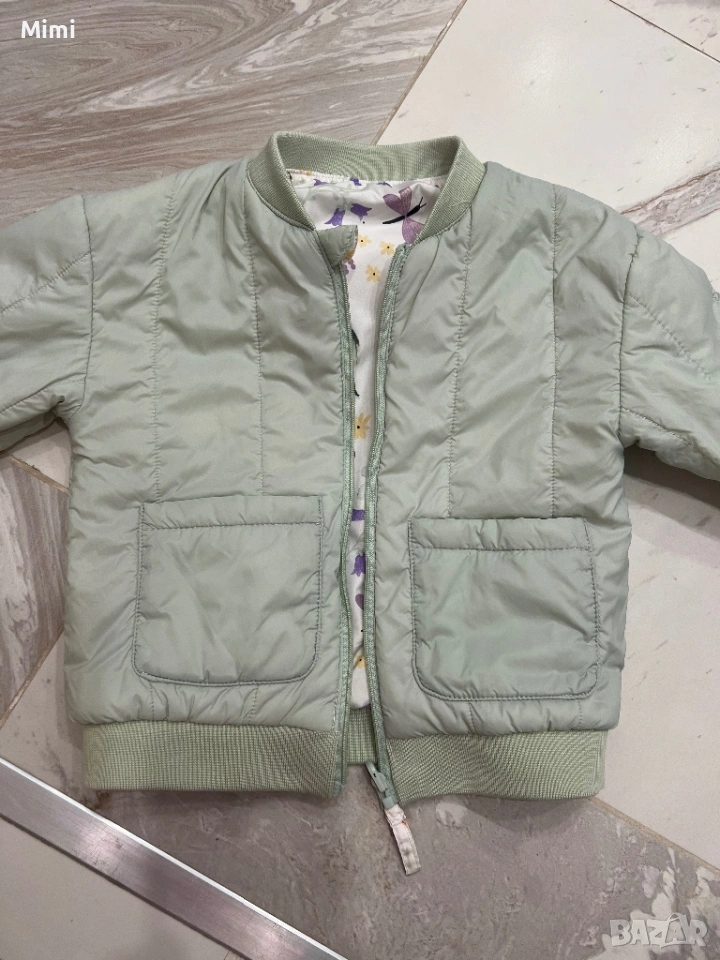 Шушляково преходно яке двулицево може да се носи и от двете страни използвано в добро състояние и рипсено памучно панталонче чисто ново не е използвано с широки крачоли комбинирват се много добре като цвят ръст 86