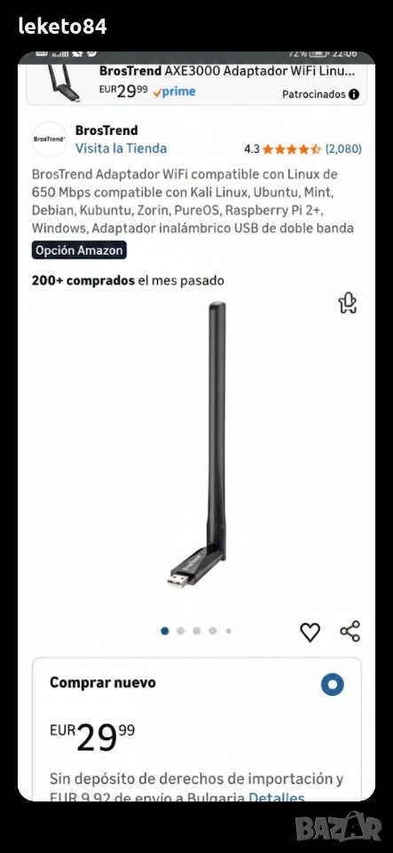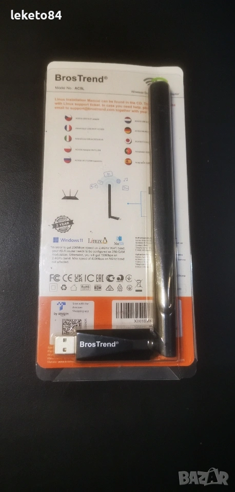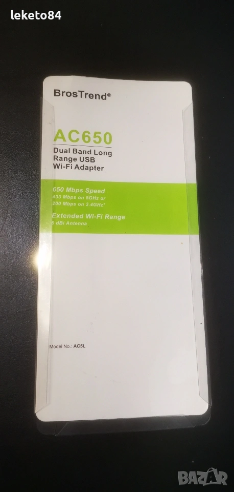 ​Продавам чисто нов двубандов Wi-Fi адаптер BrosTrend AC650 (модел AC5L). Устройството не е използвано и е в безупречно състояние, готово за работа. Идеално решение за настолни компютри или лаптопи, които имат нужда от бърз и стабилен безжичен интернет.