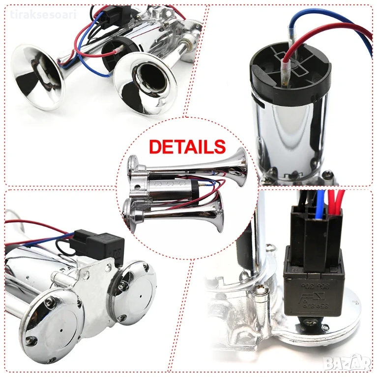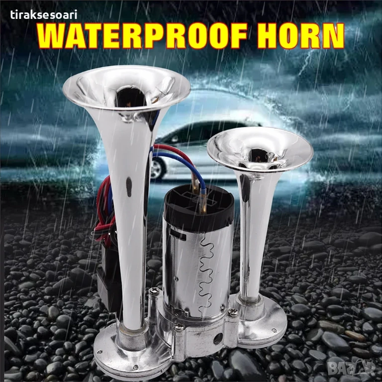 двойна тромба 12v, клаксон 150db, тромба с компресор, автомобилен клаксон 12v, тромба за камион, въздушна сирена 150db, хром тромба, мощен клаксон 12v