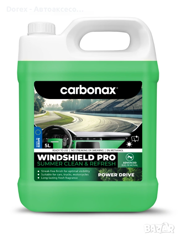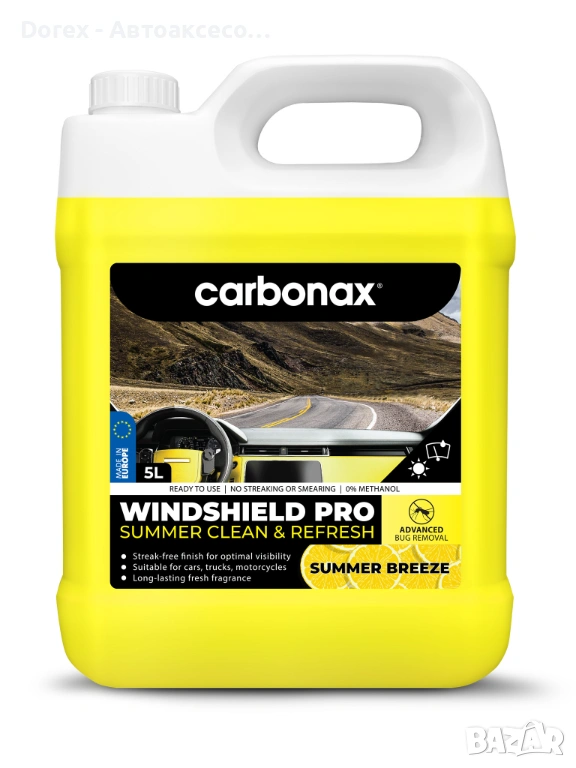 Осигурете си перфектна видимост и спокойствие зад волана през летните месеци. Лятната течност за чистачки CARBONAX Windshield Pro е създадена да отстранява ефективно насекоми, прах, полени и пътни замърсявания, без да оставя следи или замазване. А свежият аромат превръща всяко пътуване в по-приятно изживяване.