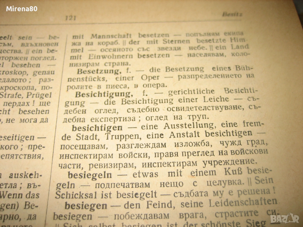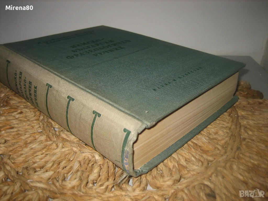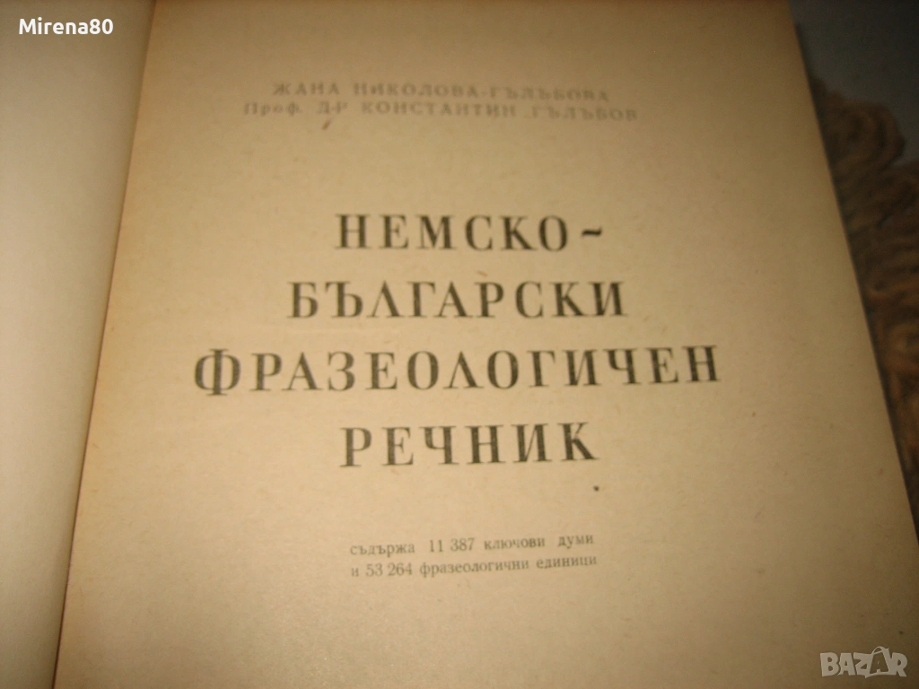 Изд. Наука и изкуство, 1958 г. Съставители: Жана Гълъбова, константин Гълъбов. Твърди корици, 932 стр. Съдържа 11 387 ключови думи и 53264 фразеологични единици (впечатляващо е колко точно са ги преброили и изписали, но....немска прецизност :))). Речникът е в отлично състояние, с общо изсветляване на кориците от времето.