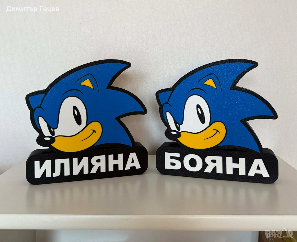 нощни лампи - Sonic персонализирани с име по Ваш избор. Дизайна е еднакво впечатляващ както при светещо положение така и с изключена светлина. Лампите могат да стоят свободно на равна повърхност или да бъдат закачени на стена. Захранването е с ниско напрежение от 5v през стандартно USB, което ги прави безопасни за деца и детски стаи за разлика от 12 и 220v моделите предлагани на пазара.