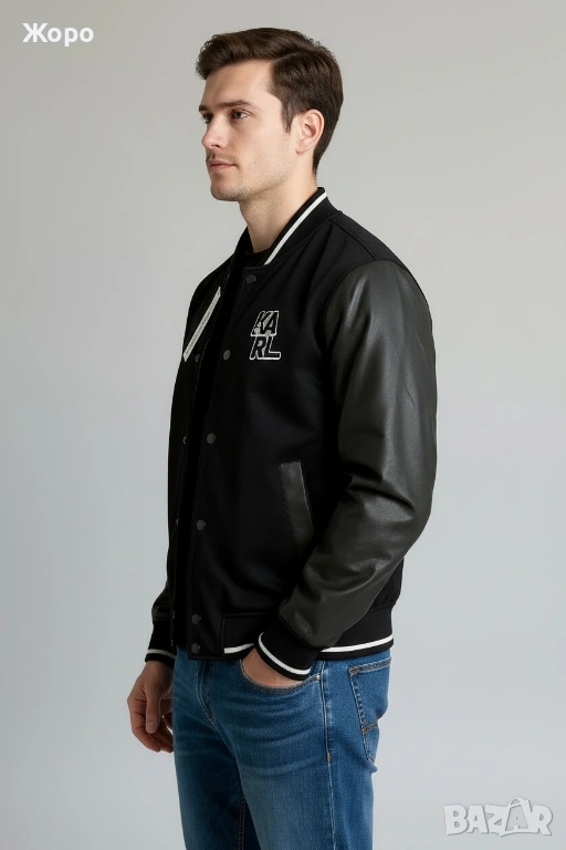 Добавете стил и класа към гардероба си с това оригинално мъжко яке тип varsity/bomber от