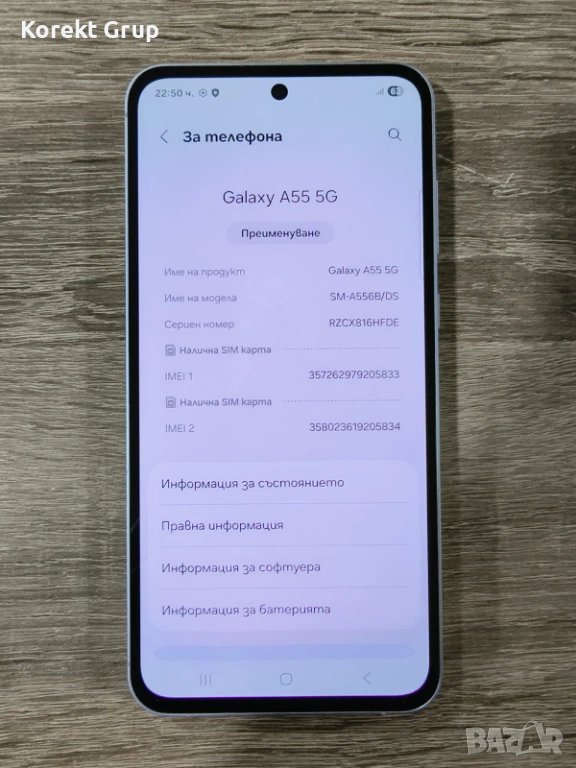 Samsung Galaxy A55 5G в ПЕРФЕКТНО състояние никакви забележки има вградена 128гб вътрешна памет и 8гб рам памет.Може да се види на място за гр.Варна и ли да се изпрати по Еконт с преглед и тест и 10% отстъпка от цената за доставка