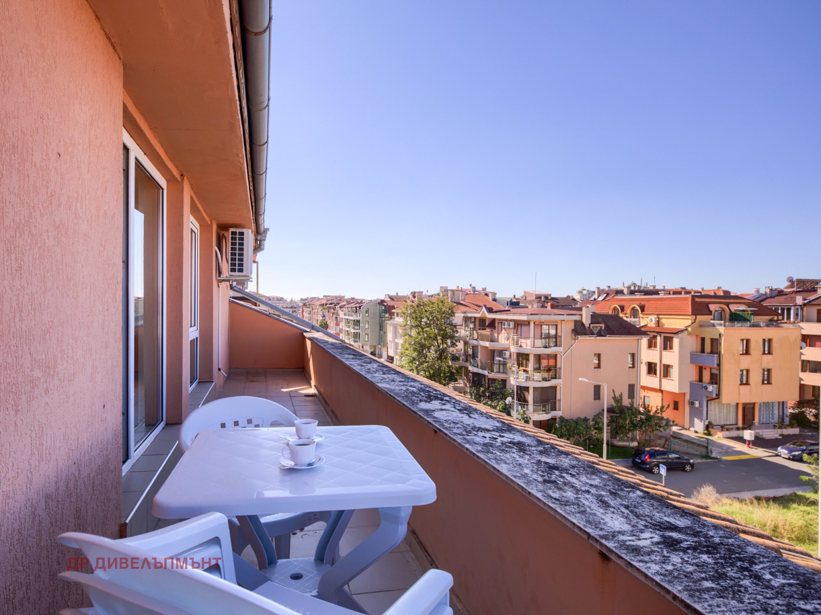 Апартамент 9 в сграда 94 Черно море 2 - напълно обзаведен апартамент с огромна панорамна тераса, в най-желаната за летуващи и трайно-пребиваващи в района, три паркоместа в затворен двор, в близост до магазини, кафета, тенис кортове, детски площадки и детска градина.