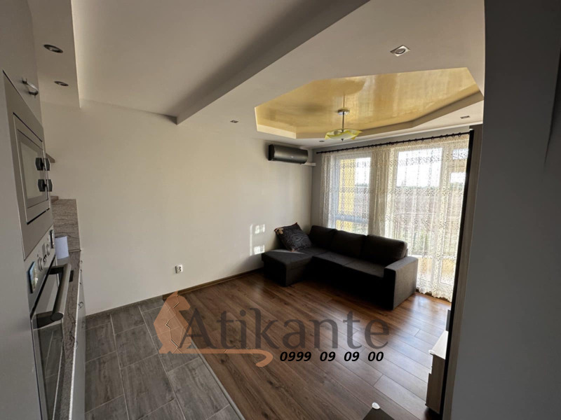 Atikante Estate presents you a luxurious 2-bedroom apartment near Sofia. It consists of a spacious living room with a separate kitchenette and a bedroom. Both rooms have access to a large balcony. The apartment has a large hallway and a bathroom with toilet. Total 77m2. The apartment is being rented fully furnished and ready to move in. Heating is provided by high-class energy-efficient air conditioners.