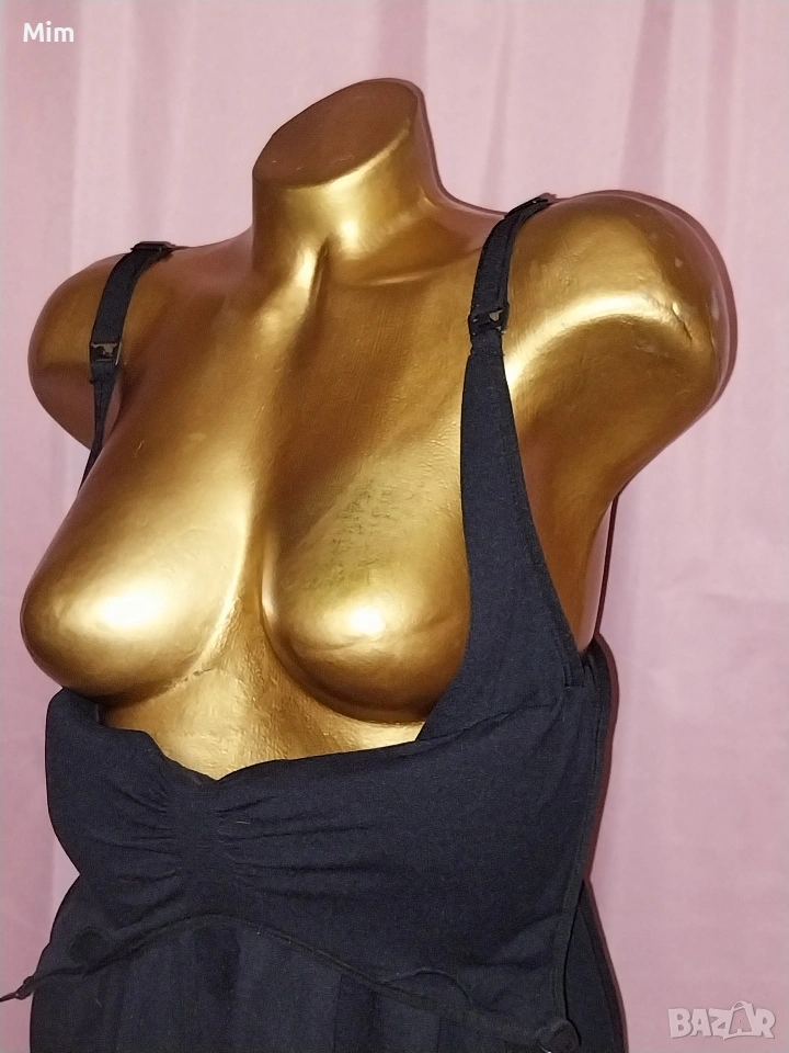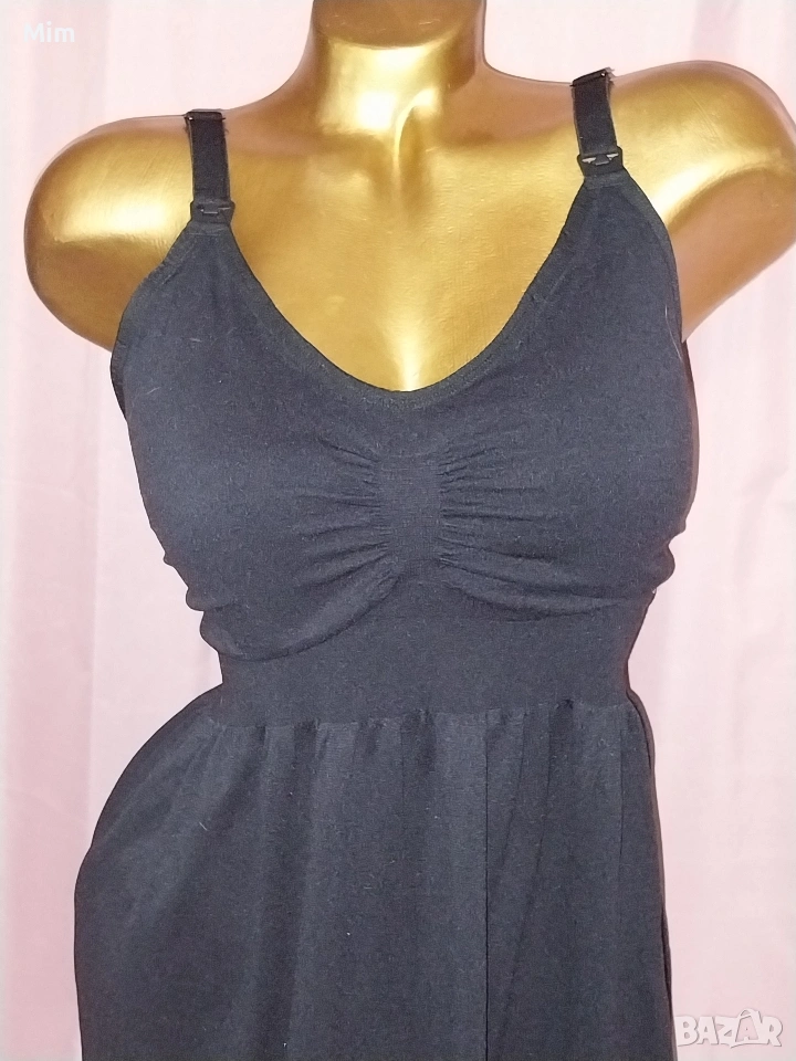 Черна еластична, безшевна рокля на бюста с подплънка която може да се маха, с падащи чашки .гръдна 80 до 110 см еластичност, надолу се разширява ,дължина 90 см .Няма забележки.