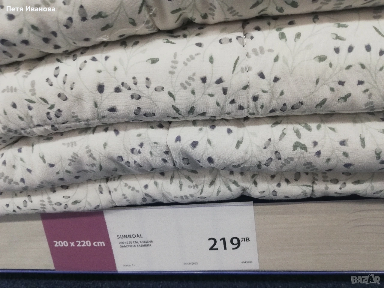 Нова олекотена завивка за лятото. Произведена от 100% естествени материали. Пълнеж от памук, лен и коприна. Външна част от памук. 200/220. Нова!