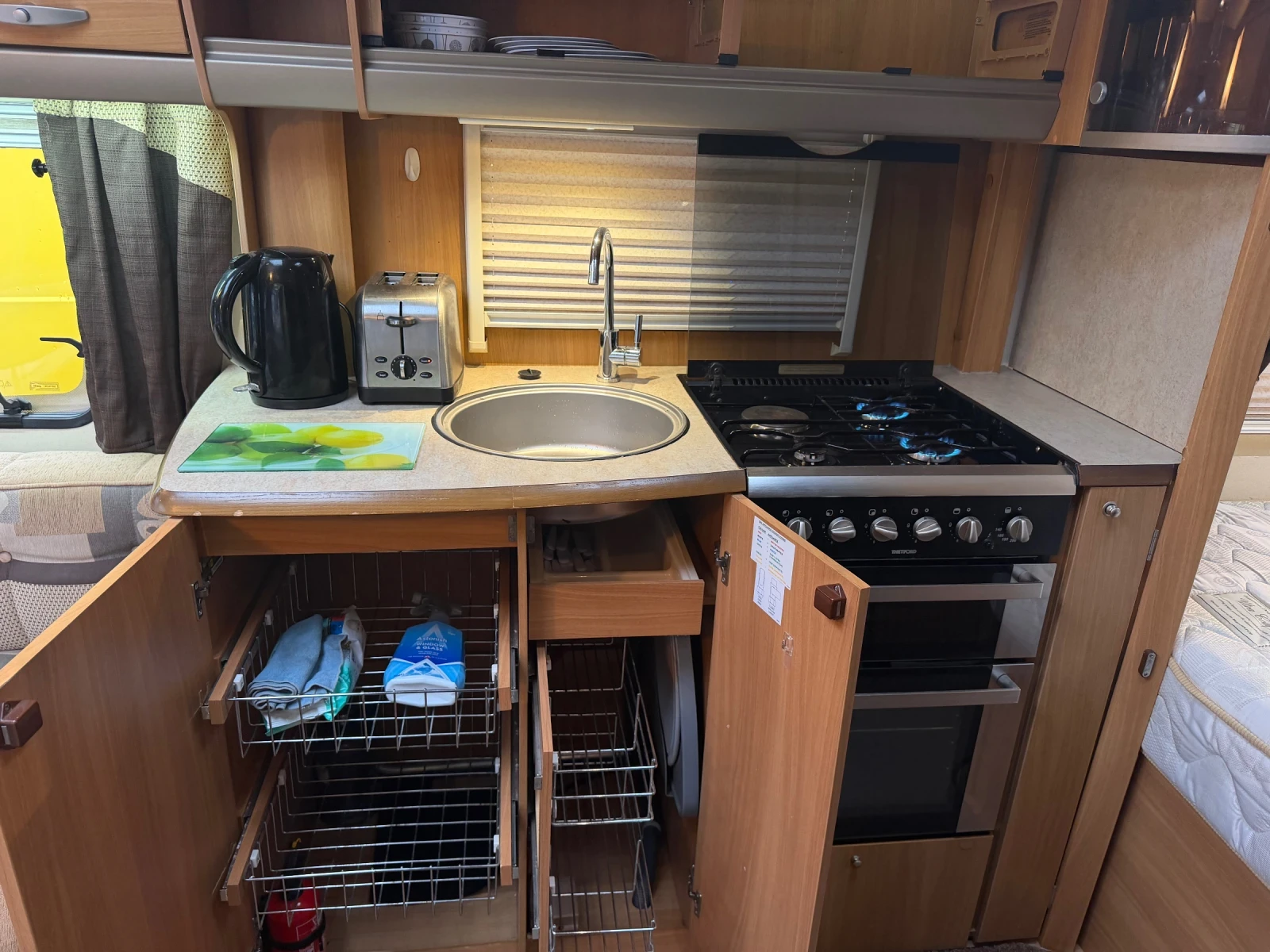 SWIFT CONQUEROR 630-Двуосна 4/5 местна КАТО НОВА, ТЕНТА, ГОЛЯМ ФОРСЕЛТ(за цялата каравана с дъно)+маса и столове за отвън, ДВОЙНА ДУШ КАБИНА, MOTOR MOVER, ТЯГОВ АКОМУЛАТОР, ATC-СИСТЕМА ЗА ПОДНАСЯНЕ , ГОЛЯМ ХЛАДИЛНИК, TEЛЕВИЗОР с въртяща се стойка, LED ОСВЕТЛЕНИЕ/Led скрито осввтление над шкафовете/ХИДРОФОРНА СИСТЕМА с много силно налягане/ДВОЙНА ДУШ КАБИНА -отделно от тоалетната, МИКРОВЪЛНОВА ФУРНА, тостер, ел. кана, ДЪЛГИ ПРЕДНИ ДИВАНИ, ЕЛЕКТРИЧЕСКО УПРАВЛЕНИЕ С ДИСПЛЕЙ, Локър за заключване на теглича и на гумата, аларма, led осветление/амбиентно осветление отпред, дърпаща се дъска за рязане, газовa бутилкa, ключ за стабилизиращите лапи, стъкла със слънчезащитна изолация, резервоар за чиста вода ЧИСТО НОВ ГОЛЯМ със стойка, резервоар за отходните води с колела, голям шибидах отпред и над фиксираната спалня, един по малък по средата и един в банята, комарник на врата, щори комарници и пердетa на всички прозорци, новата система на thetford, тоалетна чиния с въртяща се глава, Душ кабина, ГОЛЯМ хладилник с голяма камера в горния край който работи на 220v, 12v и газ, отоплителна система Аlde с дигитално управление с РАДИАТОРИ ПО ЦЯЛАТА КАРАВАНА, (газ+220v), 4 котлона за готвене на 3 на газ и 1 на 220v + фурна и грил, бойлера работи на 220v и газ , сензор за пожар, вградено fast charger зарядно за акомулатора, химическа тоалетна от ново поколение, 2 маси, минибар, нови гуми, антивиброационен теглич, антена с усилвател, табло за управление, индикатор за заряда на акомулатора, бърза връзка за вода(помпа), бърза връзка за вода с възможност за свързване към стационарна мрежа, кабел за включване в 220v стабилизатори за гумите, 220v инсталация и много други. . . Готова за къмпингуване. Топ състояние! В предния край диваните стават на голяма спалня 2. 20/2. 00м, Отстрани ГОЛЯМА ФРЕНСКА СПАЛНЯ, Мокрото помещение най отзад Двойната душ кабина и тоалетната отделно. УНИКАЛНО РАЗПОЛОЖЕНИЕ. Караваната в основата си е покрита с оригиналния си балатум, а мокета е в формата на 4 голями стелки който следват извивките на караваната, много лесна и удобна за почистване. Разделителна врата която разделя предната спалня от страничната френска спалня, мокрото помещение също е отделено с масивна врата -ОБЩО 3 помещения. Много практично и удобно разположение което позволява на голямо семейство да се разположи + обемния гардероб , кухненско оборудване, спално бельо, аларма, дизайн на интериора с заоблени детайли, 3ти стоп, CD PLAYER, TV, Аларма, сензор за дим. Луксозен дизайн, Готова за къмпингуване! ! ! ИЗПРАНА!