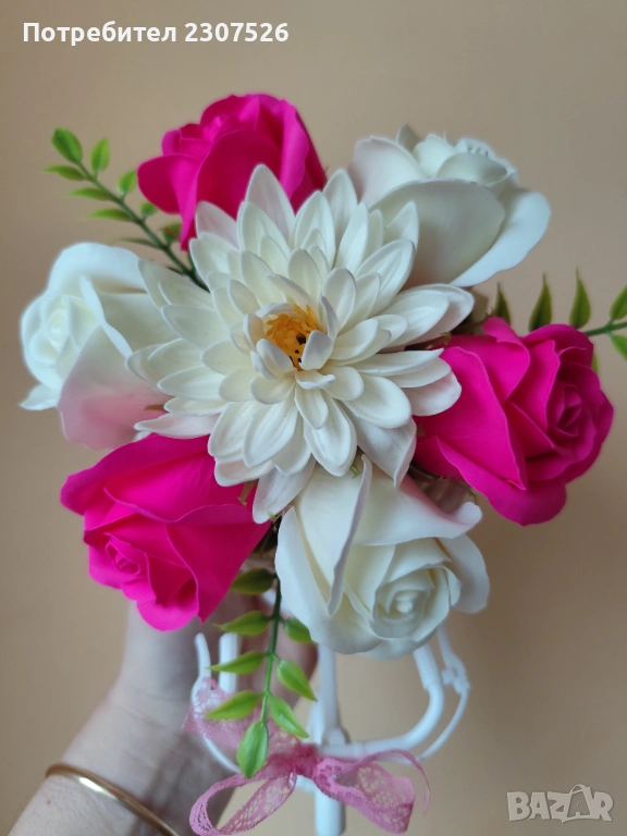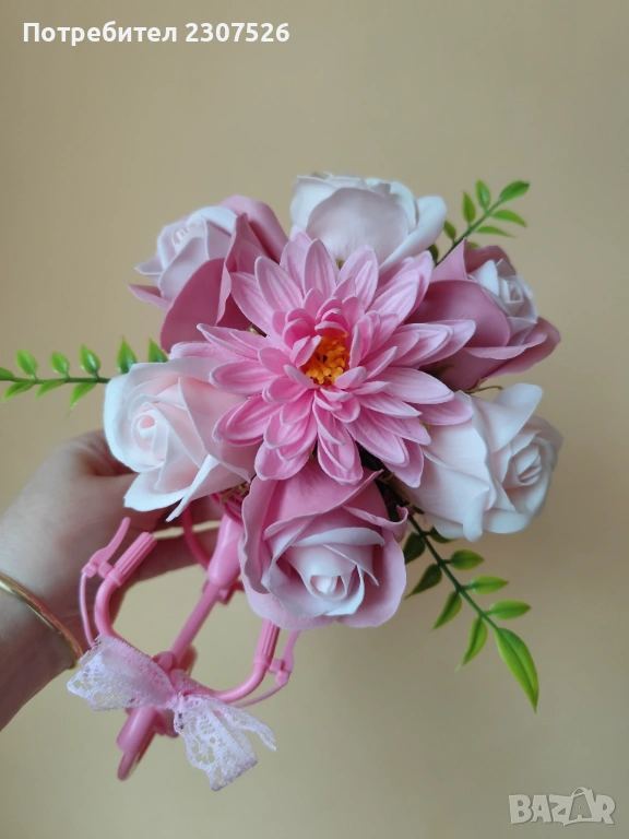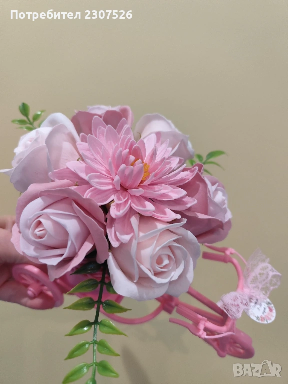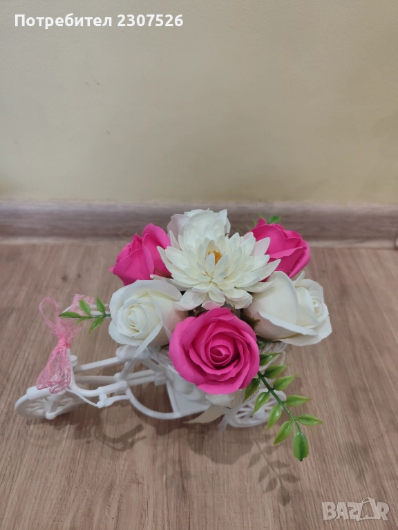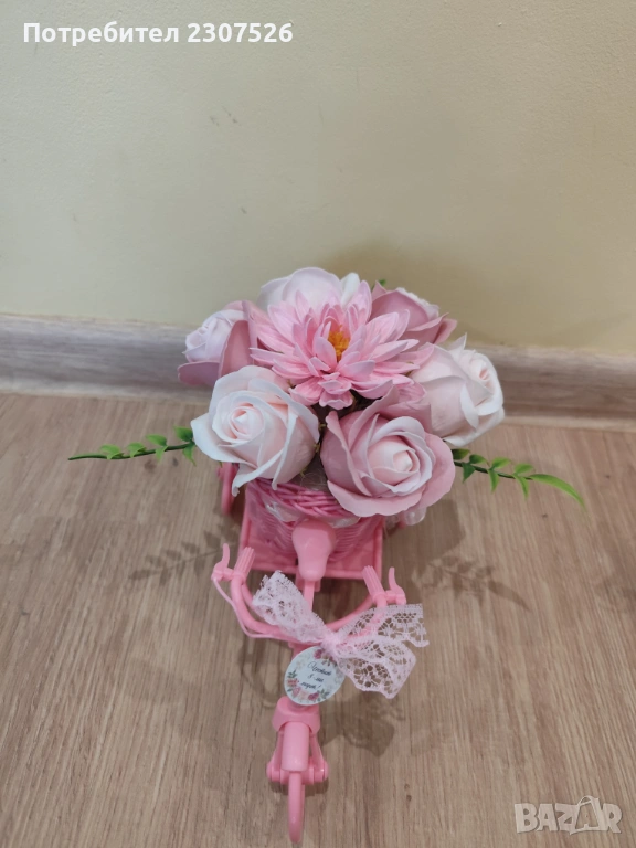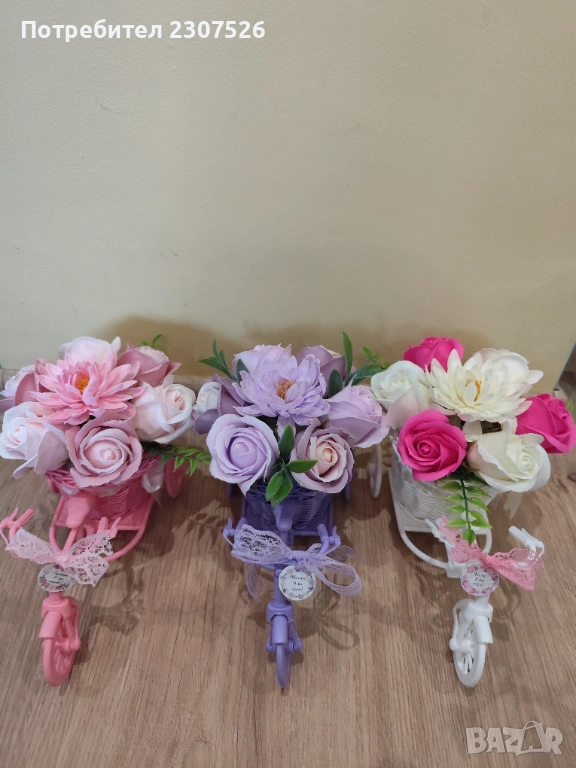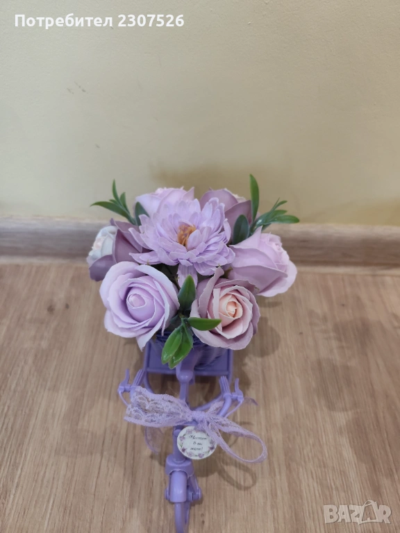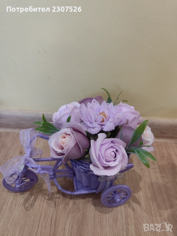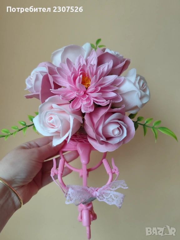 Зарадвайте вашите близки приятели с вечен букет! Колелета с пластични сапунени цветя за весели повод!