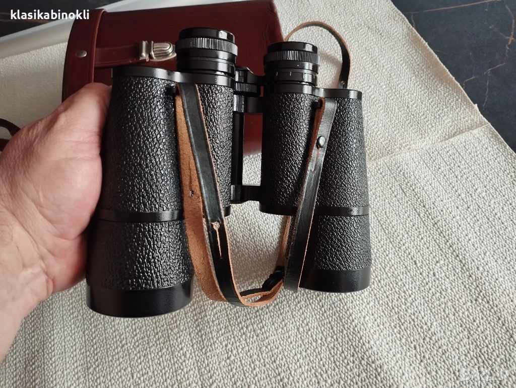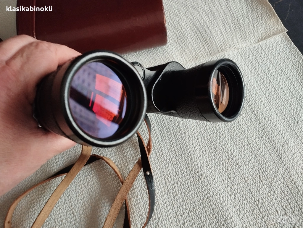 Бинокълът е в комплект с - ПЕРФЕКТЕН ОРИГИНАЛЕН КОЖЕН ТВЪРД КАЛЪФ--ЕСТЕСТВЕНА КОЖА , ПЕРФЕКТНИ КОЖЕНИ РЕМЪЦИ