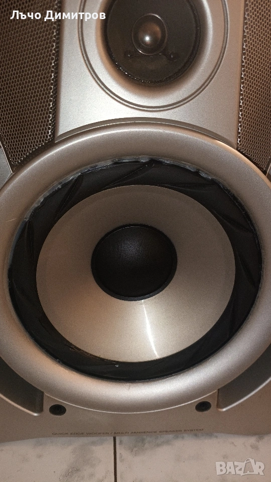 По края на гофрите е сложено нещо като селикон,очевидно гофрите там са били напукана,но си свирят без грешка,не криви изобщо звукът, те реално може и да се подменят ,но няма смисъл, пълен комплект с предпазни решетки в добро състояние,всички говорители работят, предлагам и блутут устройства цена на брой 30лв,Бърза реакция при интерес от Ваша страна, изпращам с Еконт и Спиди с опция тест и преглед, също така ще бъдат и опаковани от мен лично, за повече информация на лично.