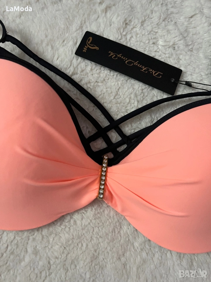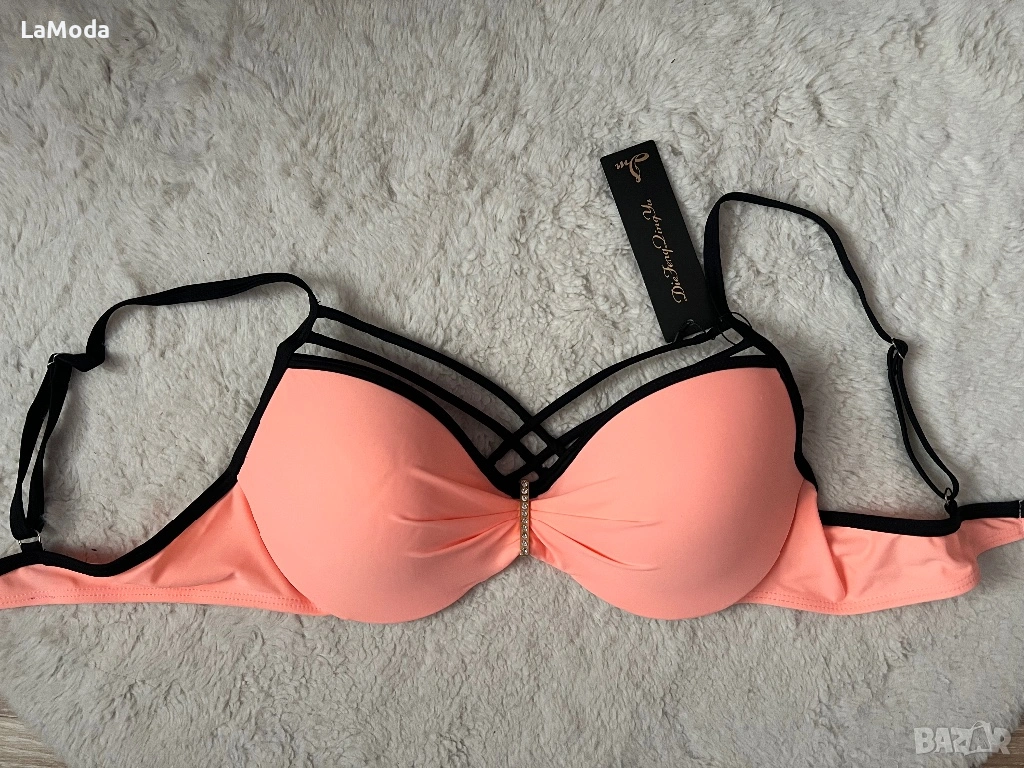 Дамско горнище на бански в приятен прасковен цвят. 🍑Не е носено, седи с етикета. Красив дизайн и мека материя. Подходящ за размер M-L.