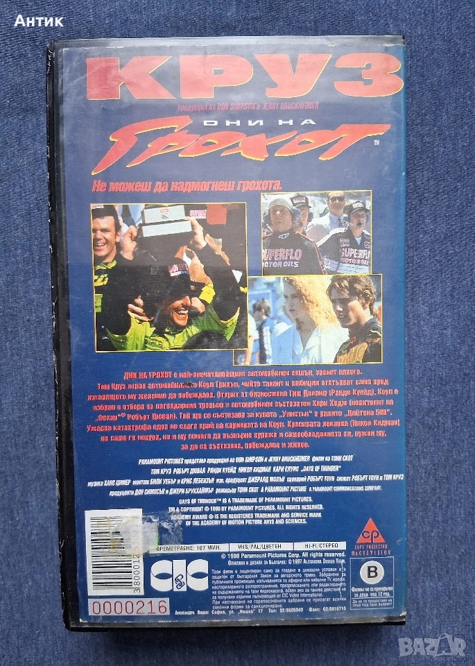 Видеокасета VHS Дни на Грохот Том Круз / 1990 год., снимка 1 - Други жанрове - 53578754 Видеокасета VHS Дни на Грохот Том Круз / 1990 год., снимка 2 - Други жанрове - 53578754 Видеокасета VHS Дни на Грохот Том Круз / 1990 год., снимка 3 - Други жанрове - 53578754 Видеокасета VHS Дни на Грохот Том Круз / 1990 год., снимка 4 - Други жанрове - 53578754 1/4