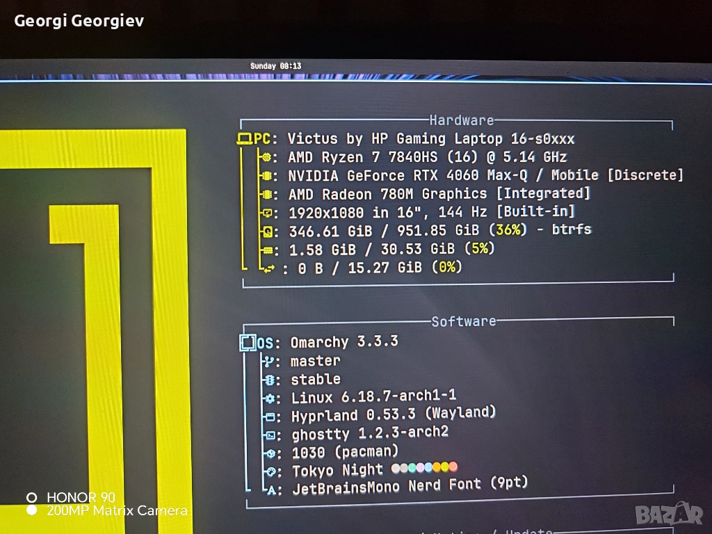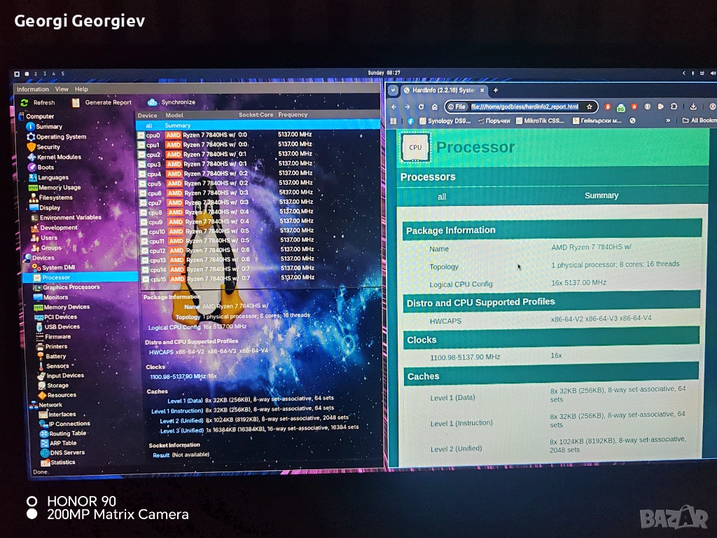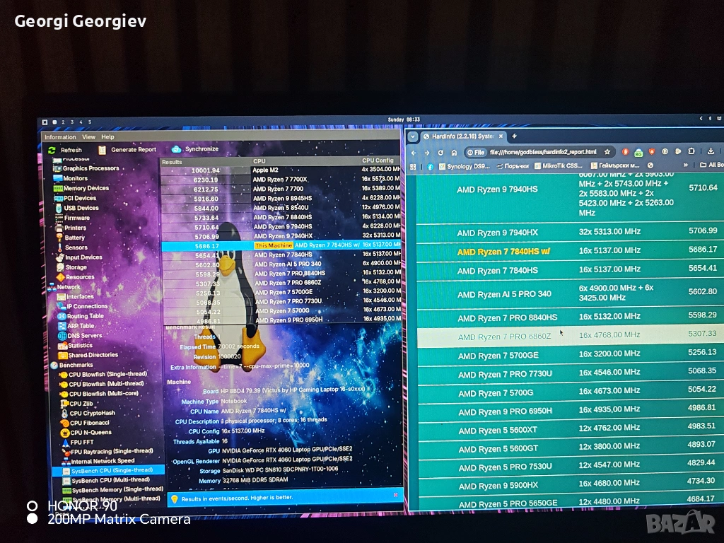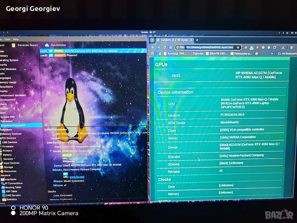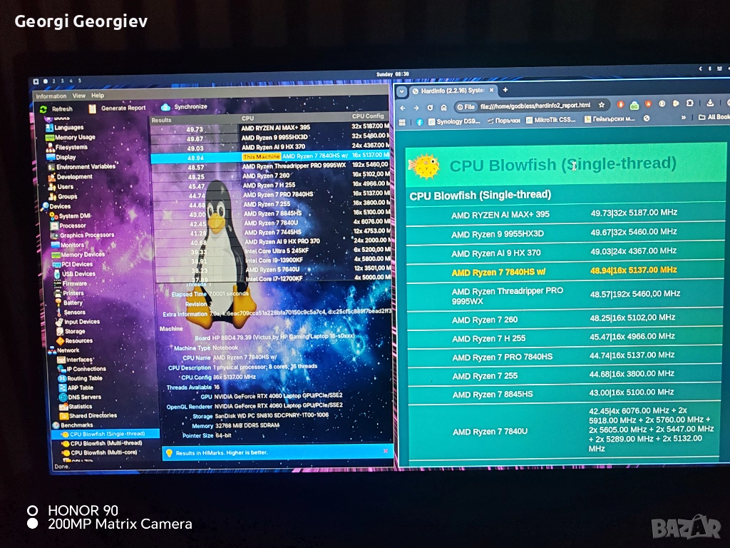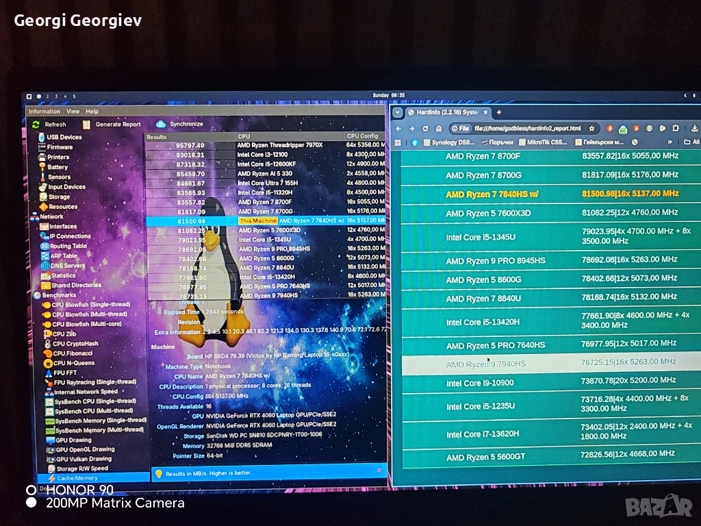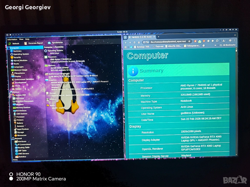 Приложил съм подробни снимки от Fastfetch и HardInfo (Linux), които доказват пълната изправност на компонентите и липсата на скрити дефекти.