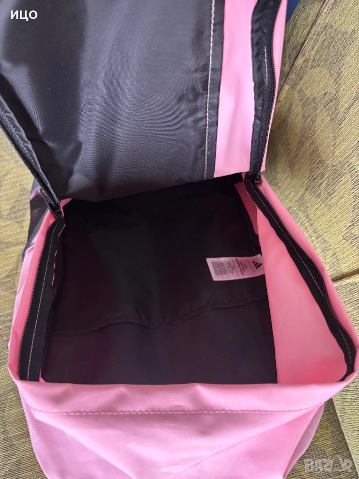 Преден джоб с цип. Странични джобове. Подплатени и регулируеми презрамки. Здраво подсилено дъно