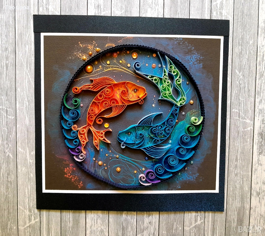 Квилинг пано за зодия Риби, снимка 1 - Пана - 53579123 Квилинг пано за зодия Риби, снимка 2 - Пана - 53579123 1/2