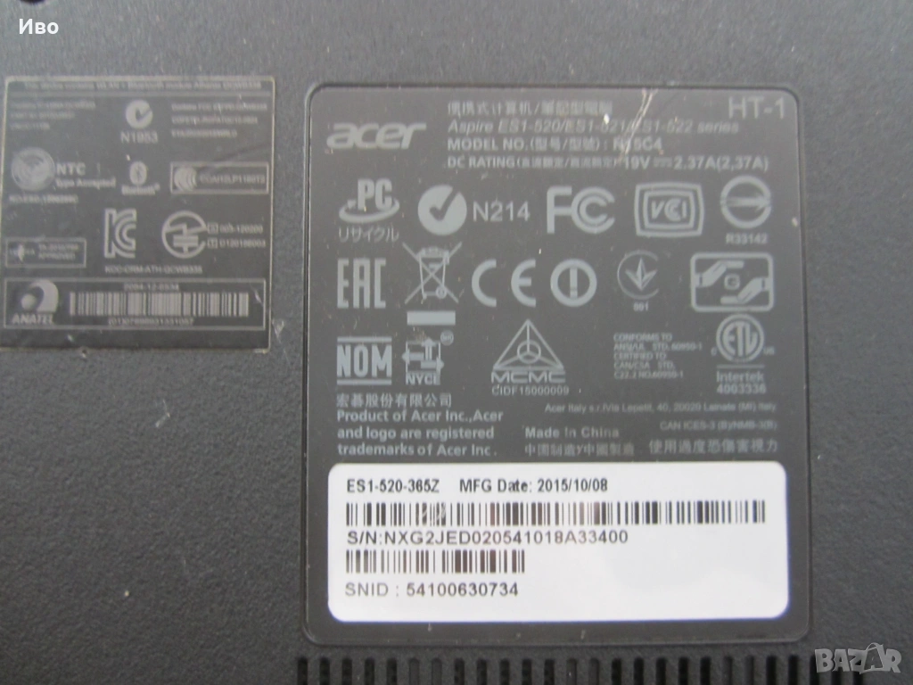 Acer Aspire ES15 ES1-520-365Z 4GB Ram 500GB HDD → Обява 53579186