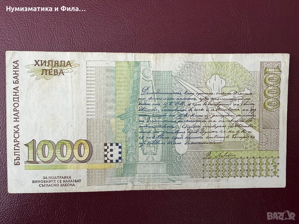 1000 лева 1996 година, снимка 1 - Нумизматика и бонистика - 53579266 1000 лева 1996 година, снимка 2 - Нумизматика и бонистика - 53579266 1000 лева 1996 година, снимка 3 - Нумизматика и бонистика - 53579266 1/3