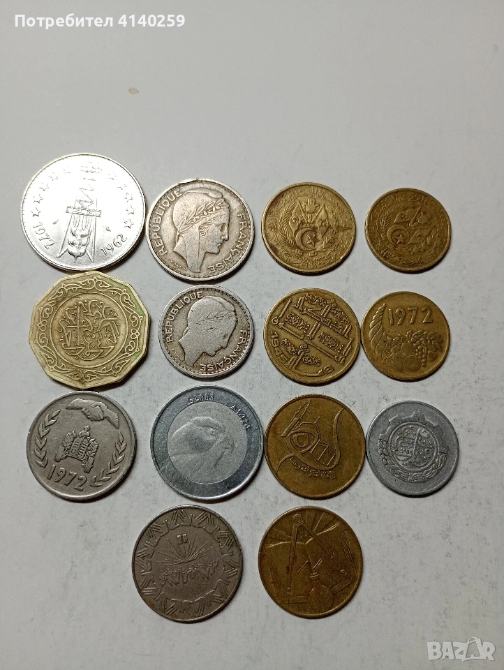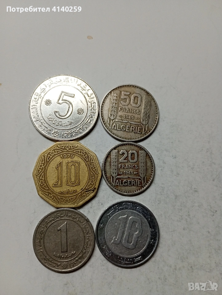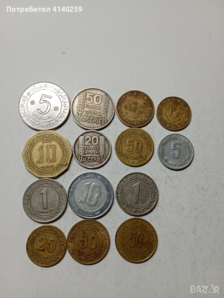 АЛЖИР МОНЕТИ ЛОТ 5 ДИНАРА 1972 Г 50 ФРАНКА 1949 Г 20 ФРАНКА 1949 Г 1 ДИНАР 1972 1983 Г 10 ДИНАРА 1979 Г И ДРУГИ НОМИНАЛИ ГОДИНИ НЕЧИСТЕНИ ЦЕНА ЗА 14 БРОЯ СЪСТОЯНИЕ ВИДИМО ПОЛУЧАВАТЕ СНИМАНИТЕ МОНЕТИ РАЗГЛЕДАЙТЕ ДРУГИТЕ МИ ОБЯВИ ДА КОМБИНИРАТЕ ДОСТАВКА ЕКОНТ ЗА ВАРНА ЛИЧНО