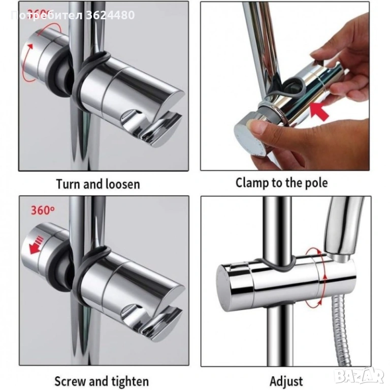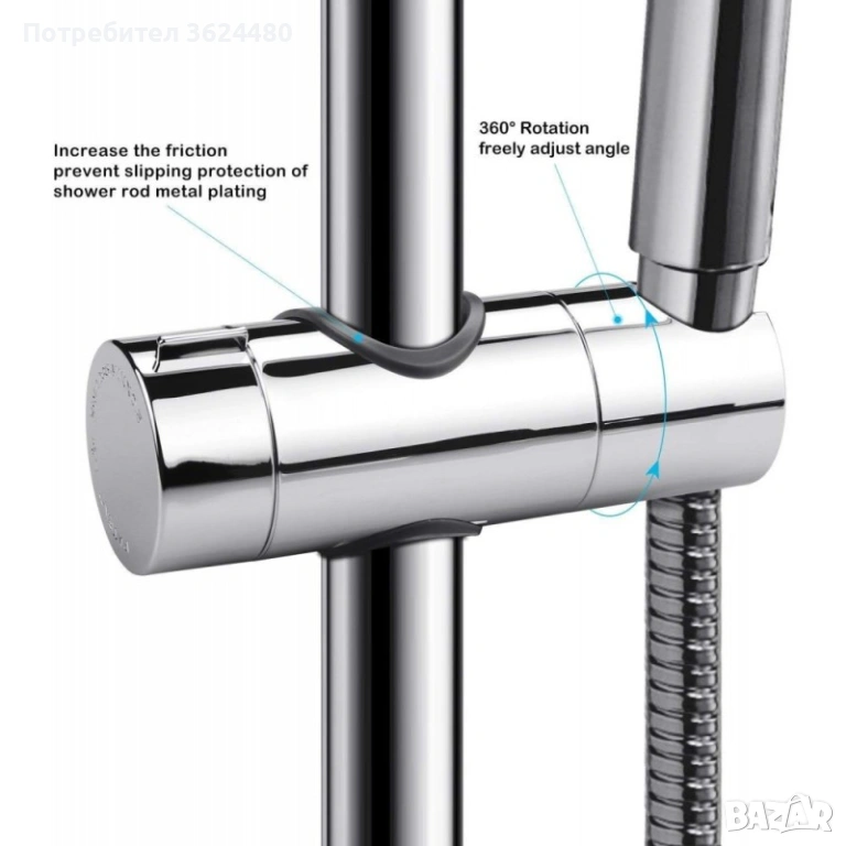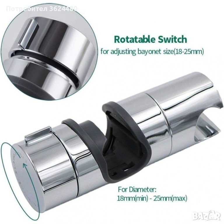 360 ГРАДУСА СВОБОДНО ВЪРТЕНЕ: Държачът за душ слушалка може да бъде регулиран, просто като завъртите винта на държача, поддържайки 360 градусово въртене.