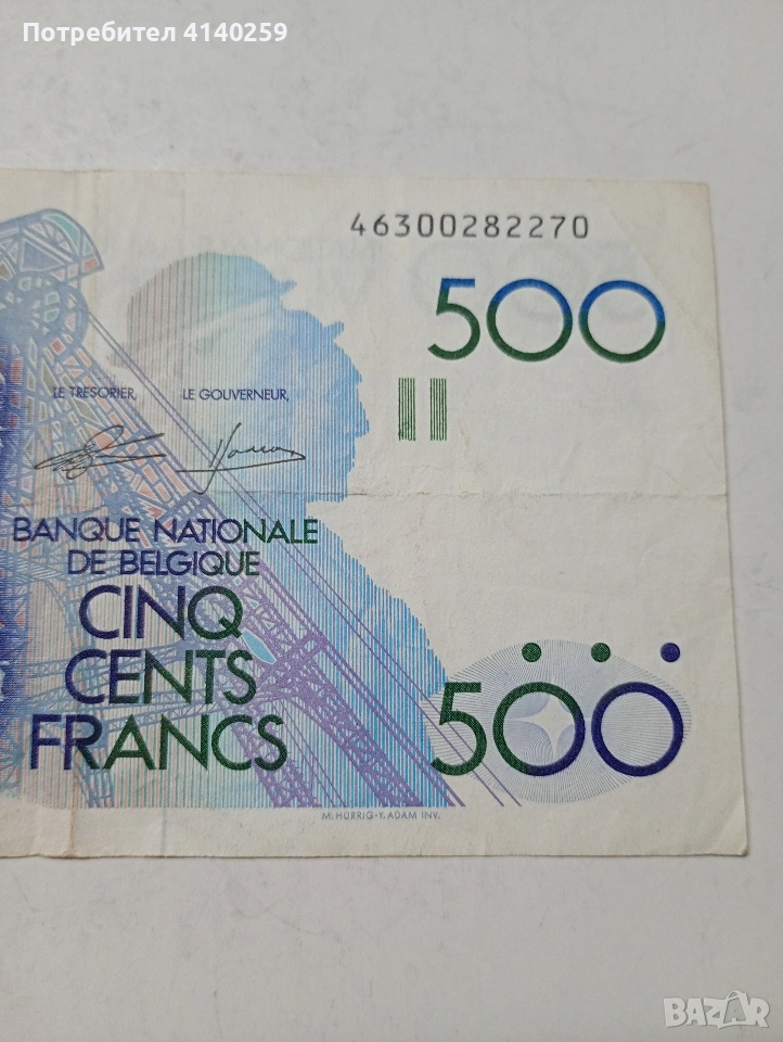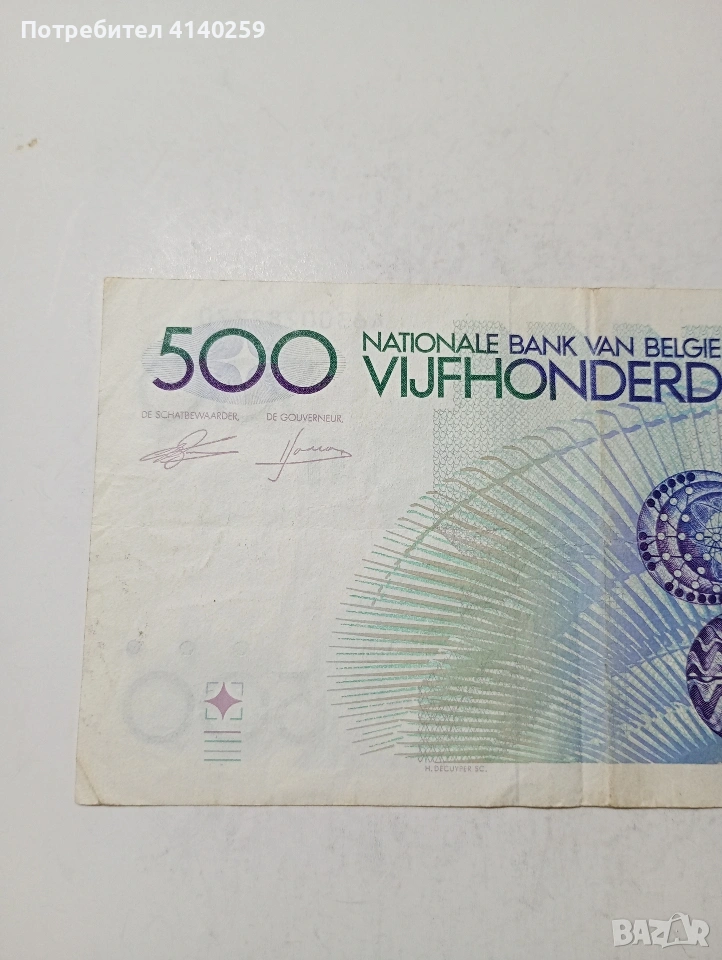 БЕЛГИЯ БАНКНОТА 500 ФРАНКА 1982 Г СЪСТОЯНИЕ ОТЛИЧНО ПОЛУЧАВАТЕ СНИМАНАТА БАНКНОТА РАЗГЛЕДАЙТЕ ДРУГИТЕ МИ ОБЯВИ ДА КОМБИНИРАТЕ ДОСТАВКА ЕКОНТ ЗА ВАРНА ЛИЧНО