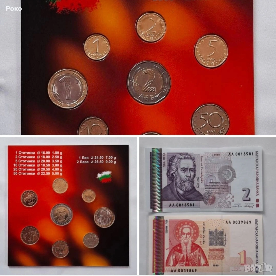 Лот от Нови Банкноти 1999г.И Монети в Албумче (UNC) 1, 2 и 5 ст., ем. 2000 г., 10, 20 и 50 ст., ем. 1999 г 1лв 2002г и 2лв 2015г. цена за целият лот 25€. Работя с Еконт с опция преглед или лично предаване.